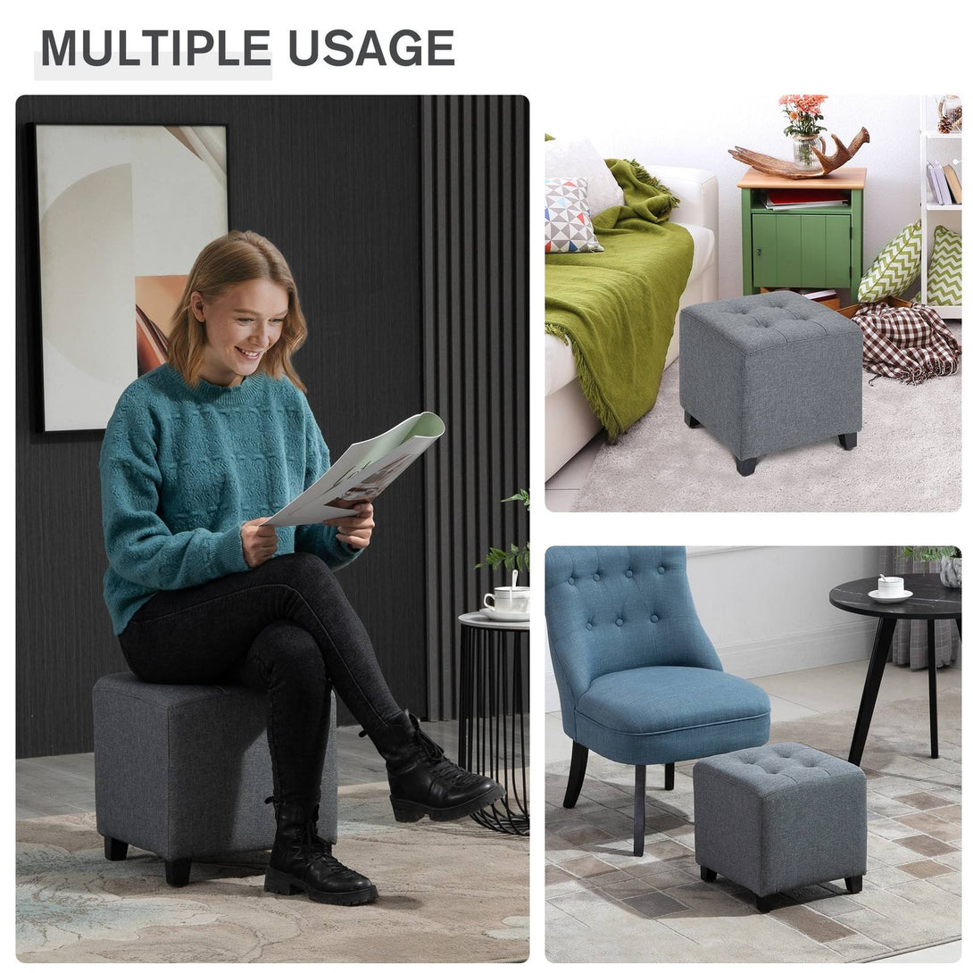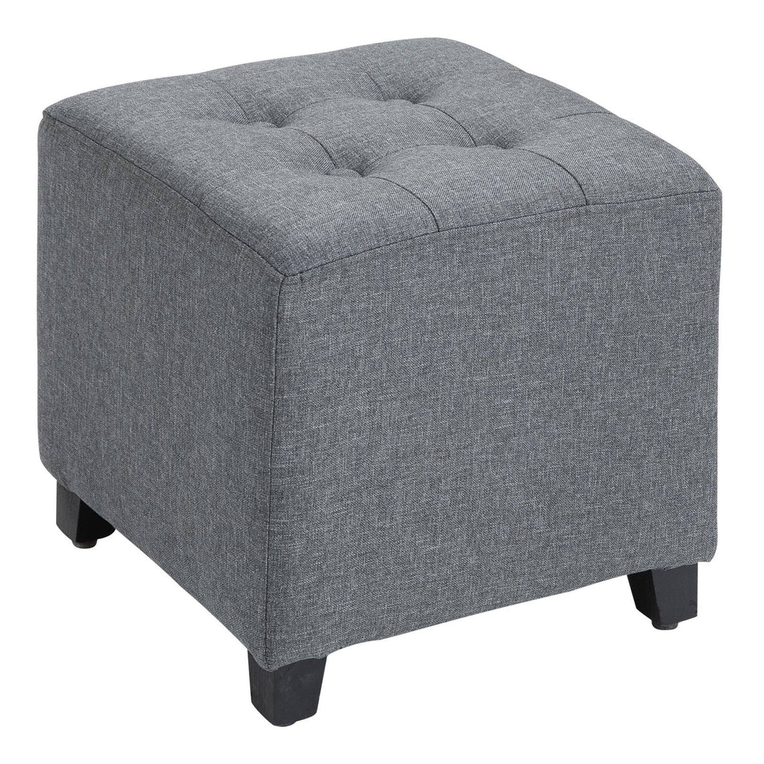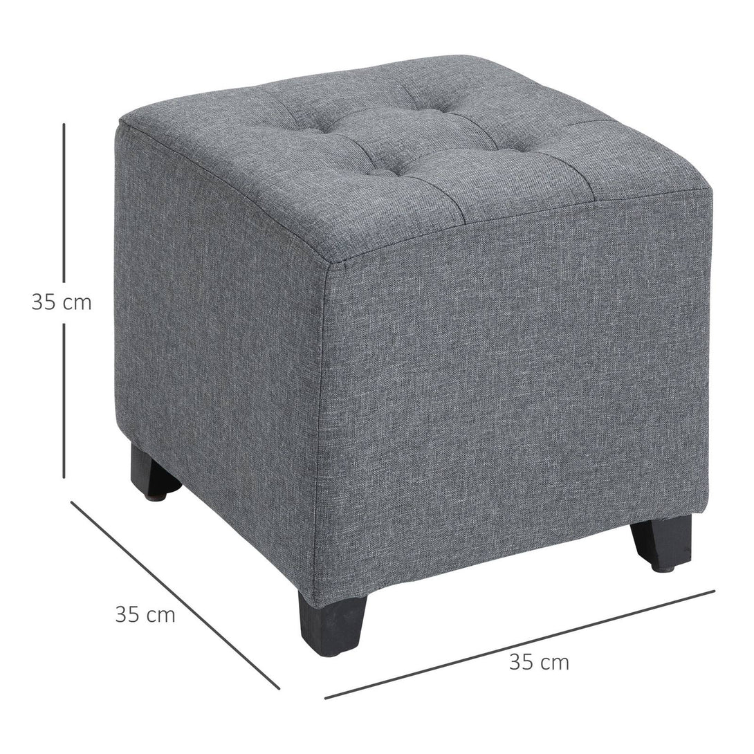 Linen-Look Square Ottoman Footstool w/ Button Tufts Wood Frame Padding Fabric Upholstered Stylish Home Furniture Footrest Side Table Grey
