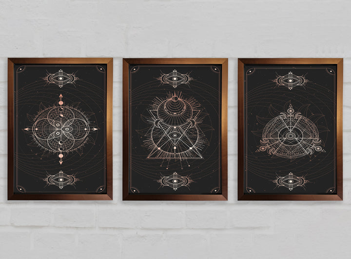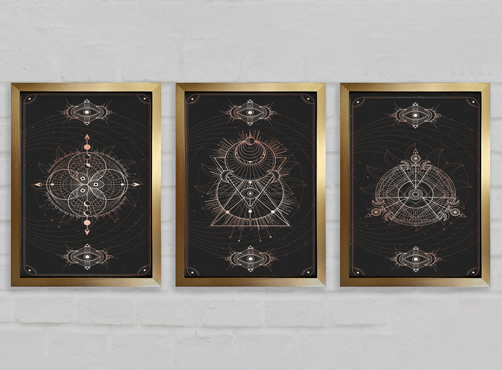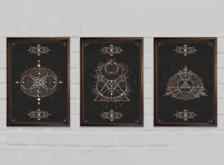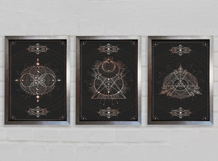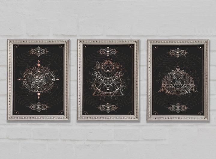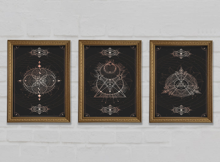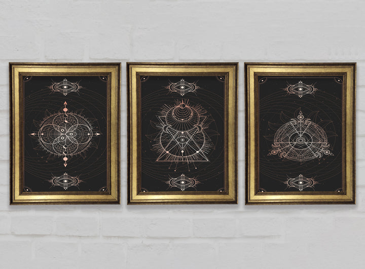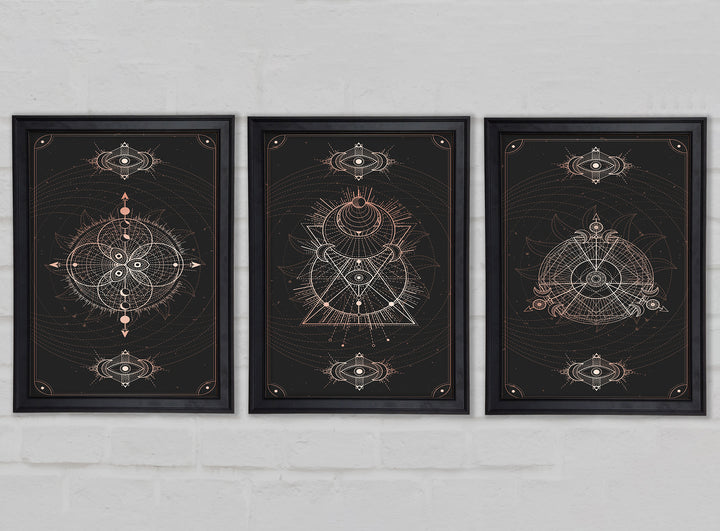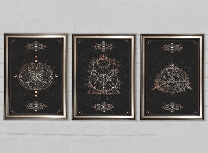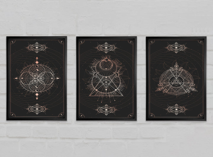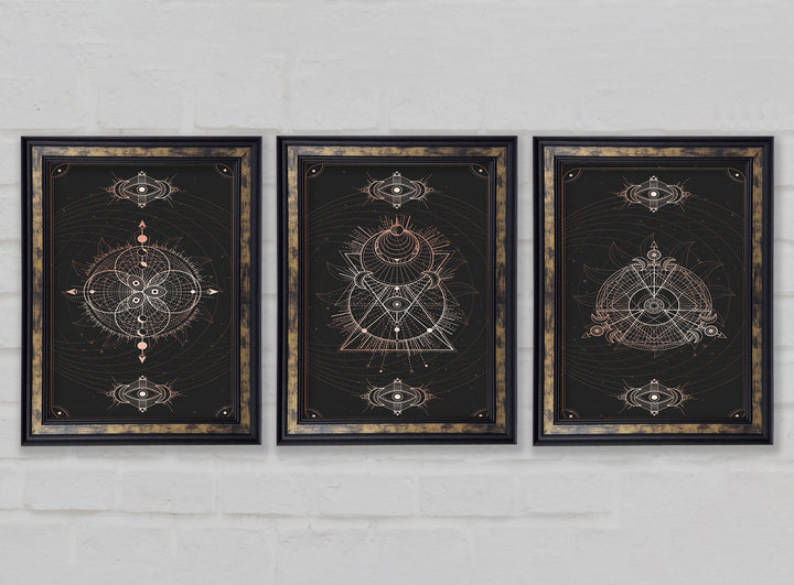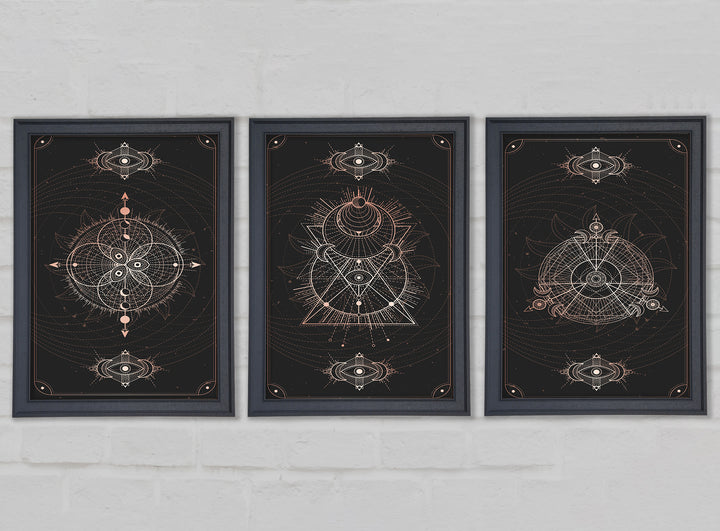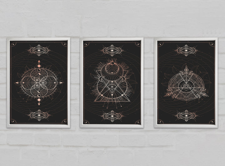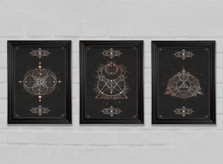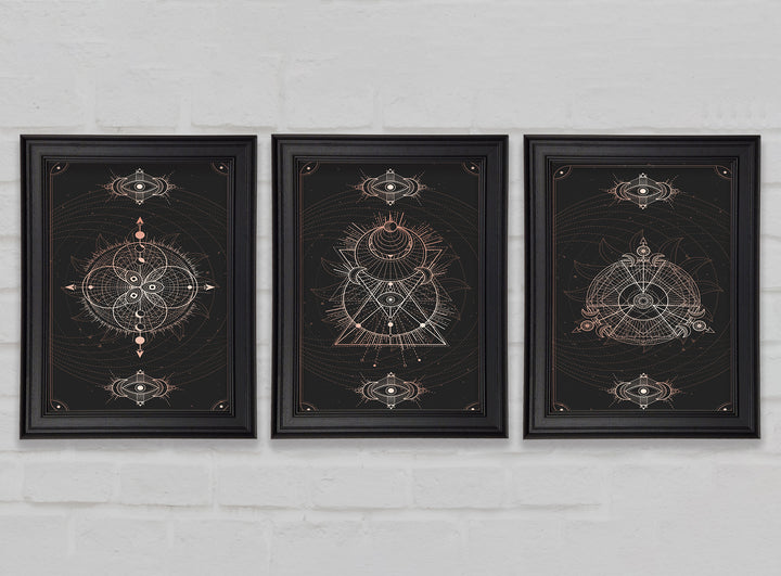 Lines Of Space set of 3 framed print wall art, available in mutiple frame colours. Ready to hang from the box and handmade in the United Kingdom.