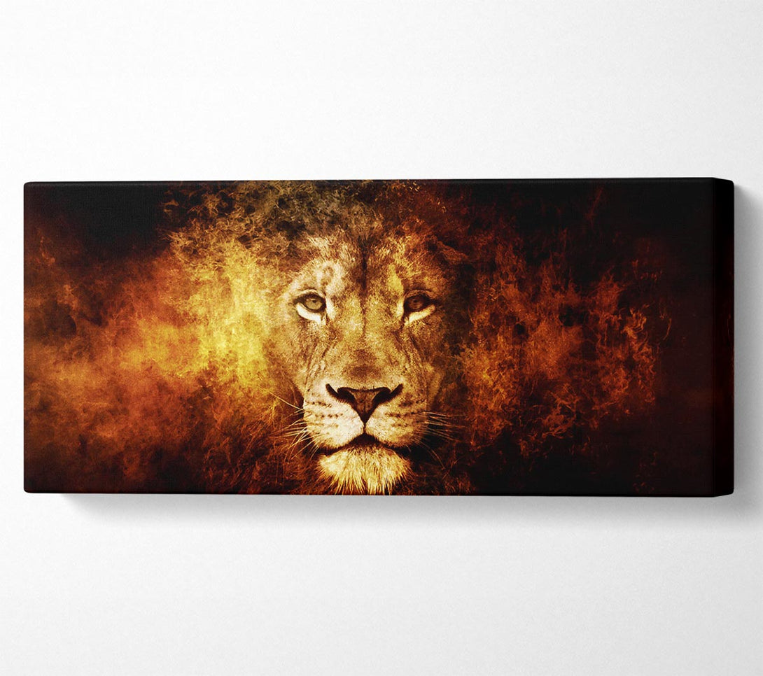 Lion Blaze canvas, printed on coated polyester canvas. Mounted on to a 44mm box frame, ready to hang.