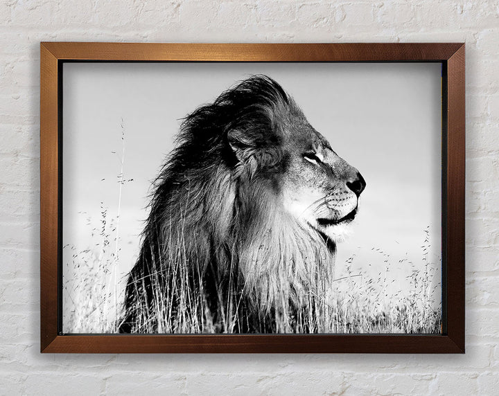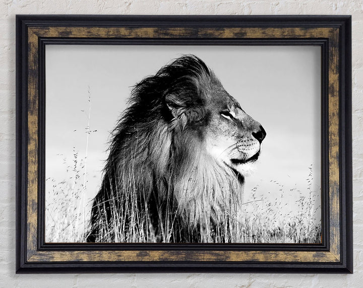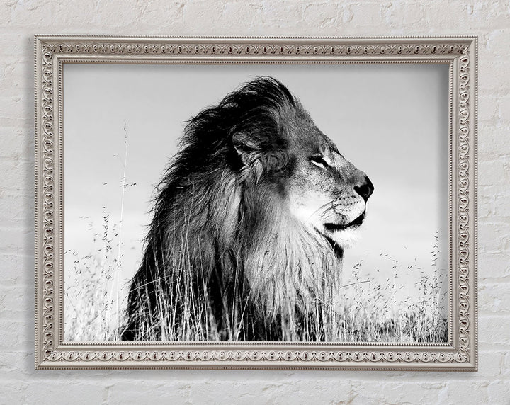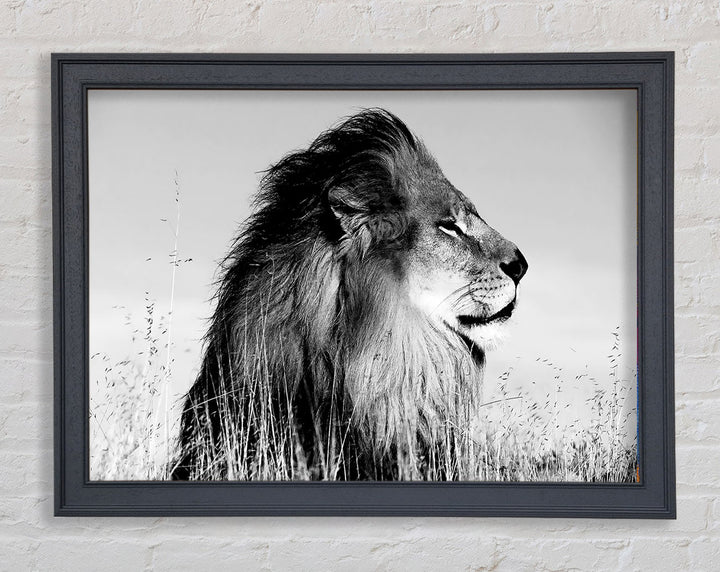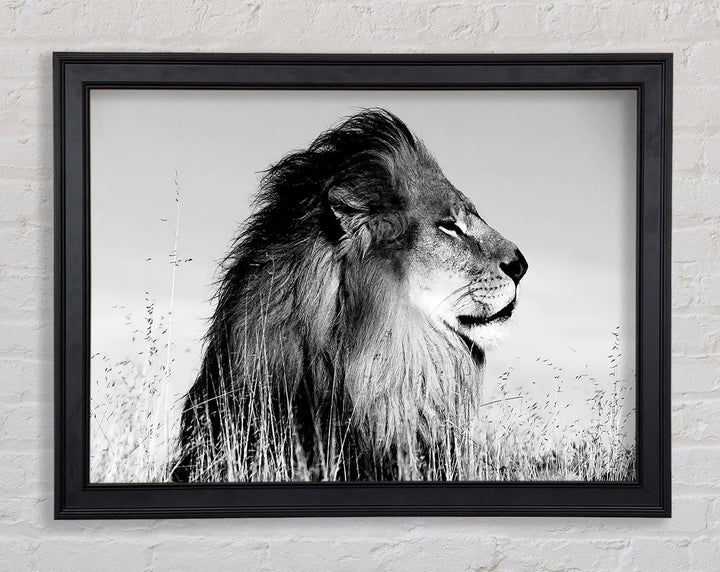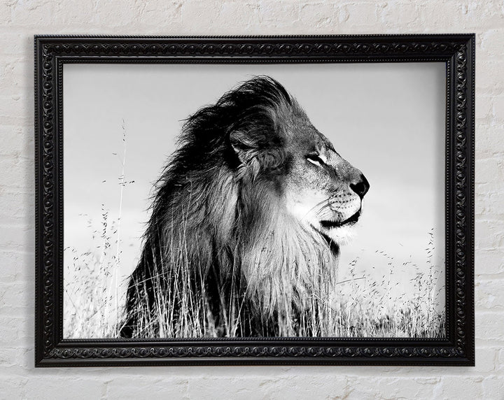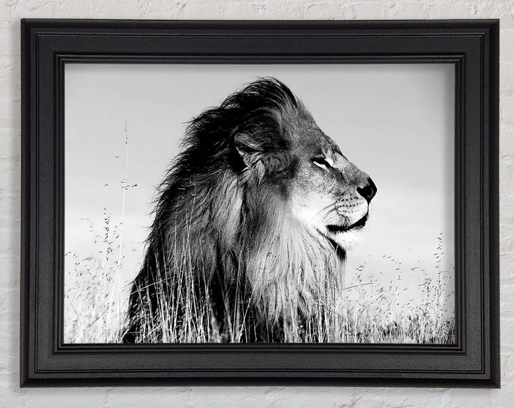 Introducing the Lion On Watch Black n White Framed Print, a stunning piece of framed art that captures the majestic beauty of a lion in a striking black and white design. This print is available in six sizes, ranging from small to oversized, ensuring a perfect fit for any space in your home or office. Each piece is handmade in the United Kingdom, ensuring exceptional quality and craftsmanship.