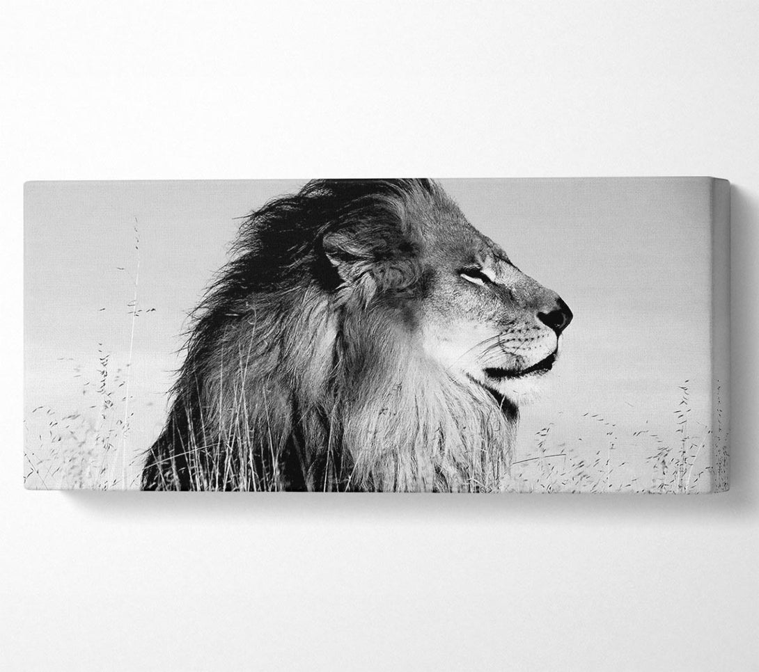 Picture of Lion On Watch Black n White Panoramic Canvas Wall Art
