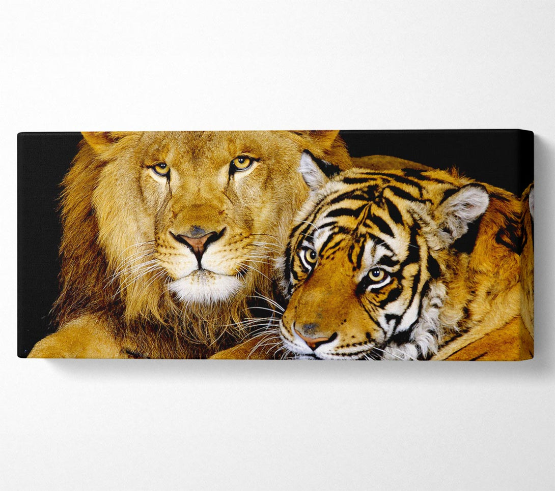 Picture of Lion Tiger Love Panoramic Canvas Wall Art