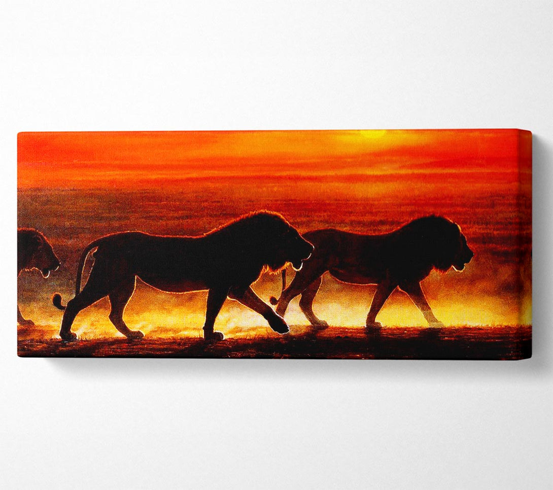 Lions On The Hunt canvas, printed on coated polyester canvas. Mounted on to a 44mm box frame, ready to hang.