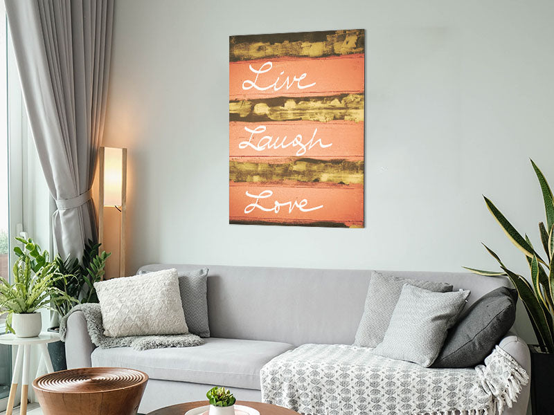 Live Laugh Love 3 Printed on brushed aluminium dibond. A modern way to display art and easy to maintain.