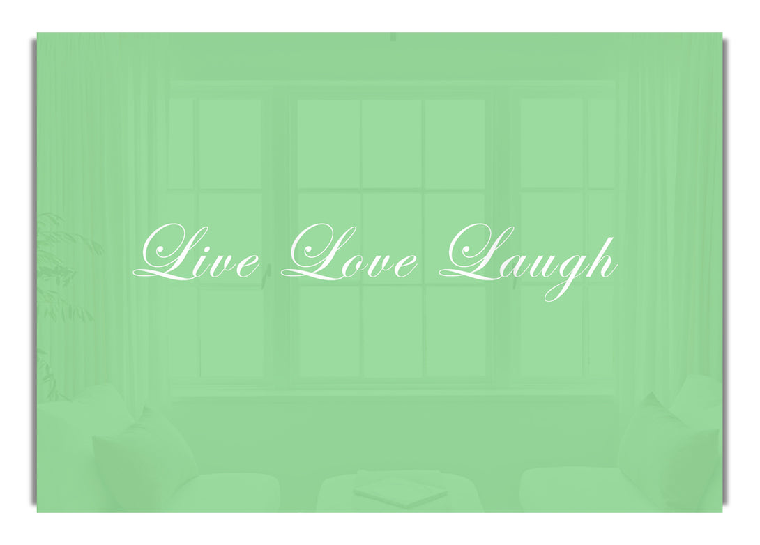 Live Love Laugh 2 Green acrylic print, UV printed onto 5mm thick acrylic glass. Comes with everything you need to hang on your wall.