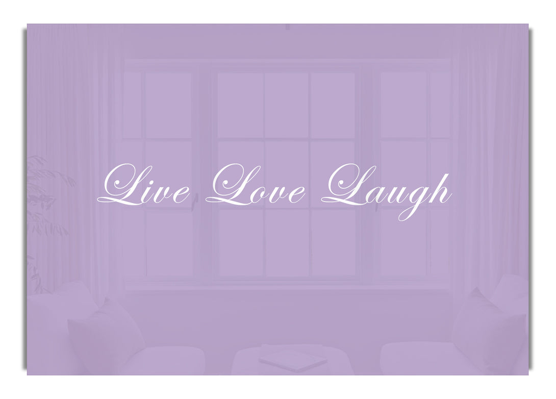 Live Love Laugh 2 Lilac acrylic print, UV printed onto 5mm thick acrylic glass. Comes with everything you need to hang on your wall.