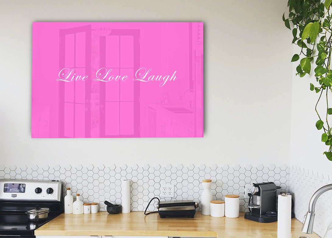 Live Love Laugh 2 Vivid Pink acrylic print, UV printed onto 5mm thick acrylic glass. Comes with everything you need to hang on your wall.