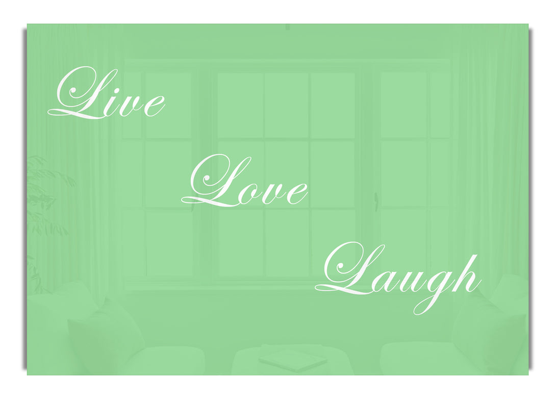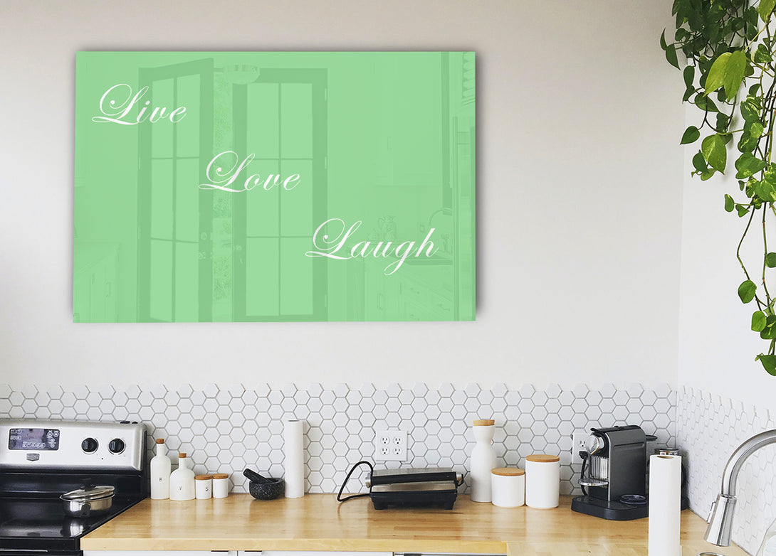 Live Love Laugh Green acrylic print, UV printed onto 5mm thick acrylic glass. Comes with everything you need to hang on your wall.