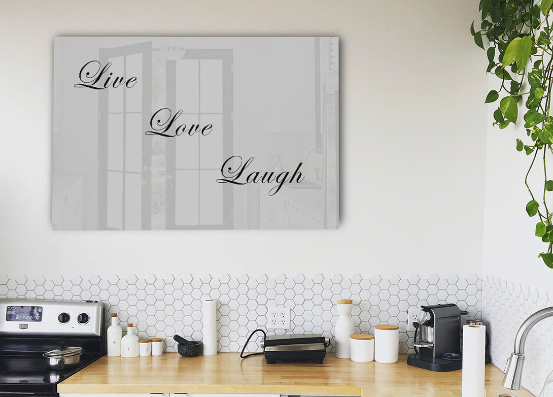 Live Love Laugh Grey acrylic print, UV printed onto 5mm thick acrylic glass. Comes with everything you need to hang on your wall.