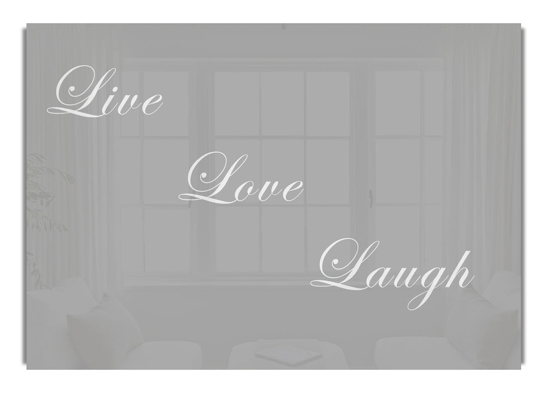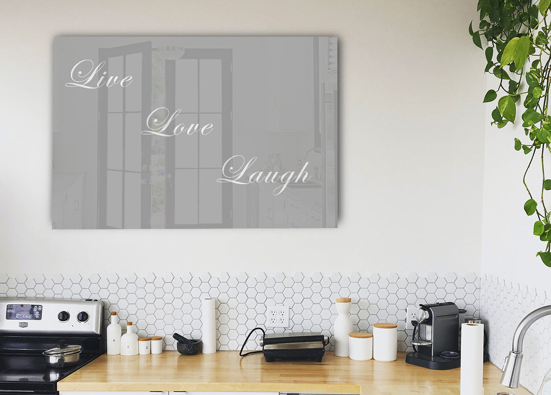 Live Love Laugh Grey White acrylic print, UV printed onto 5mm thick acrylic glass. Comes with everything you need to hang on your wall.