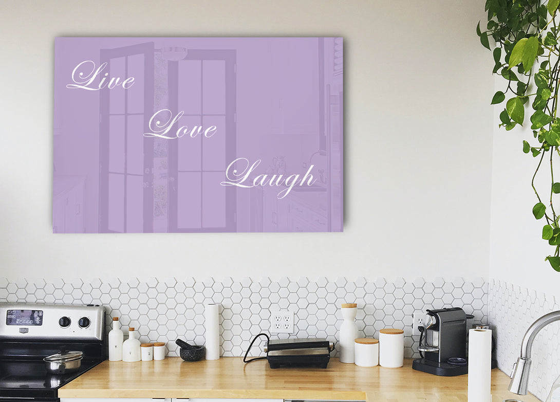 Live Love Laugh Lilac acrylic print, UV printed onto 5mm thick acrylic glass. Comes with everything you need to hang on your wall.