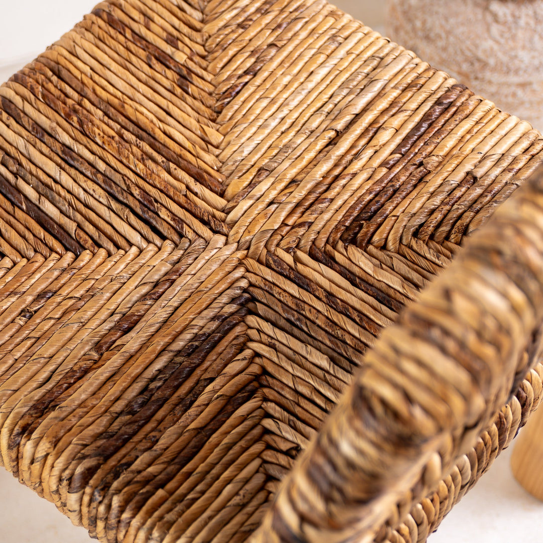 The Loki Chair is crafted by hand from natural banana leaf, carefully dried and tightly wrapped to create a textured weave with its own unique colour and tone. Unlike mass-produced rattan, each piece has subtle variations that bring warmth and detail to a dining space. The woven finish has a natural spring and comfort that feels relaxed and supportive, while the solid teak frame keeps everything sturdy for everyday use.
