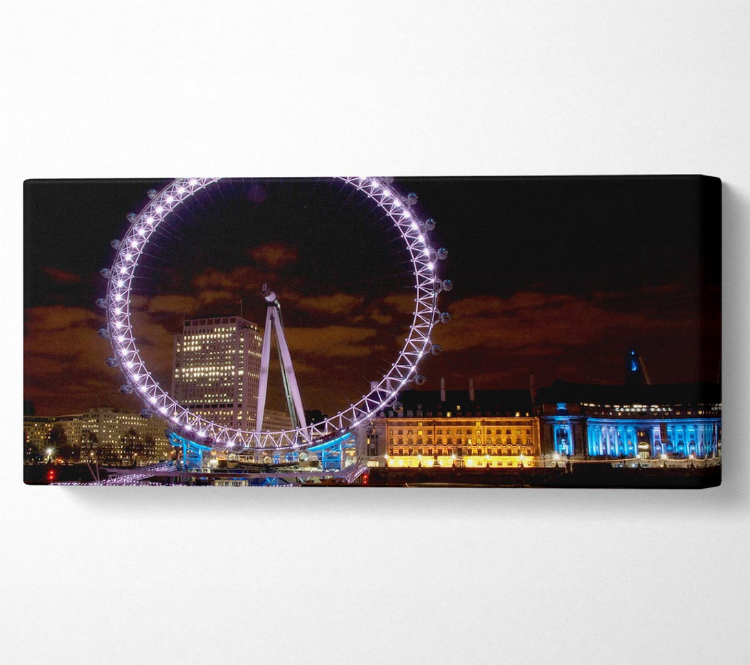 London Eye Water Lights canvas, printed on coated polyester canvas. Mounted on to a 44mm box frame, ready to hang.