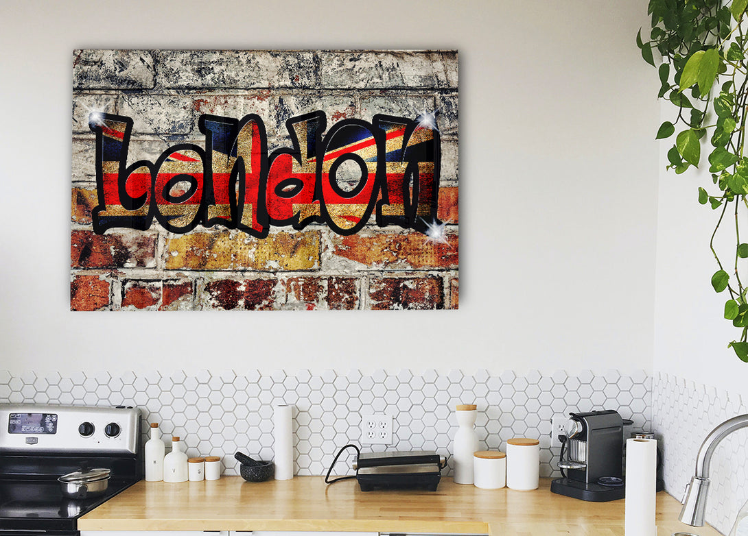 London Flag acrylic print, UV printed onto 5mm thick acrylic glass. Comes with everything you need to hang on your wall.