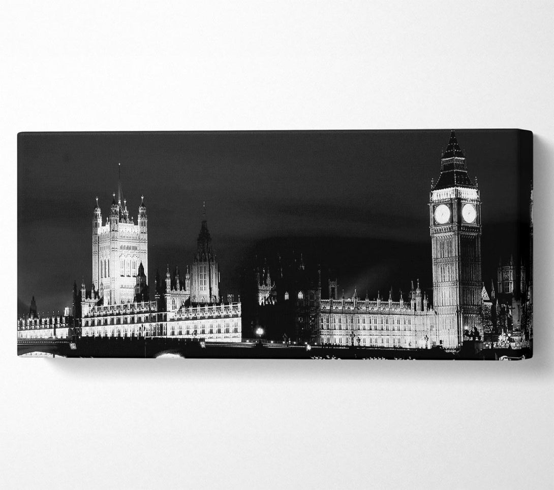 London Houses Of Parliament Dark Nights canvas, printed on coated polyester canvas. Mounted on to a 44mm box frame, ready to hang.