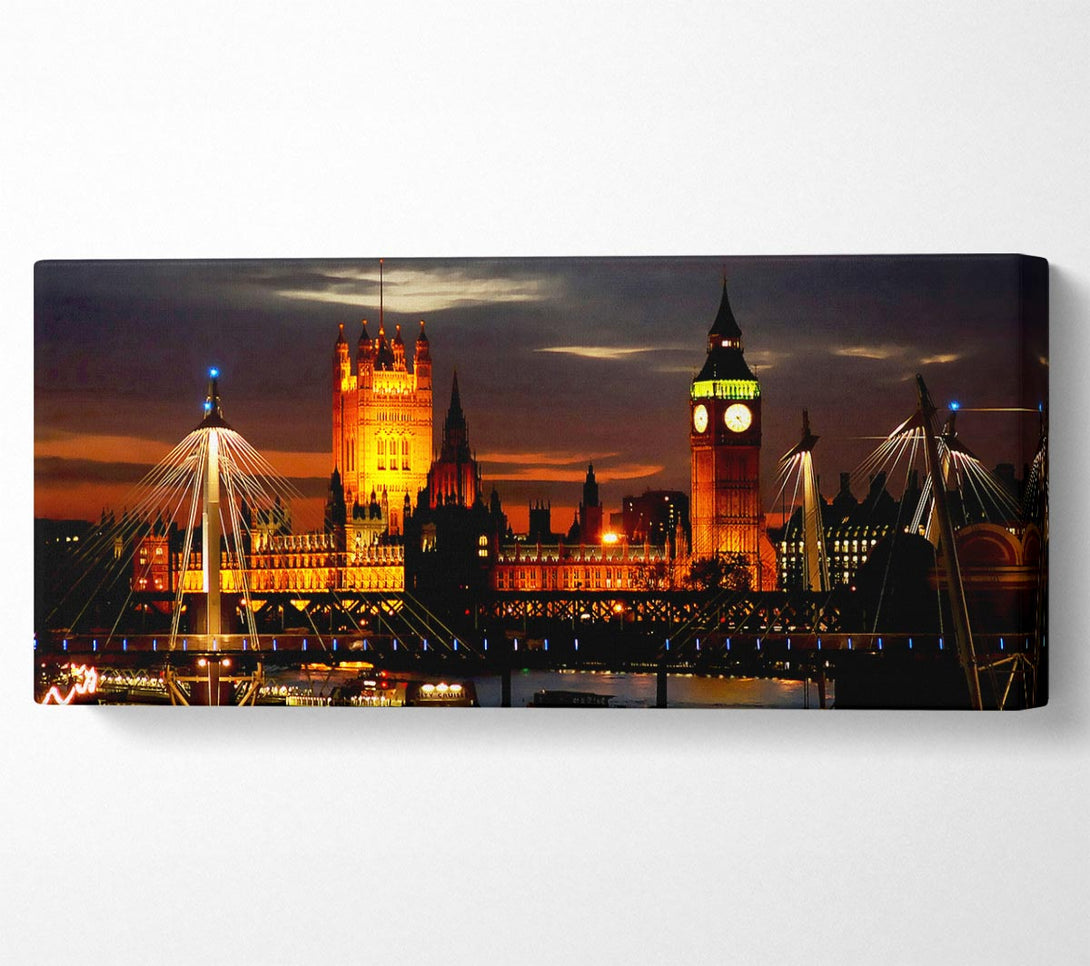 Picture of London Houses Of Parliament Lights Panoramic Canvas Wall Art
