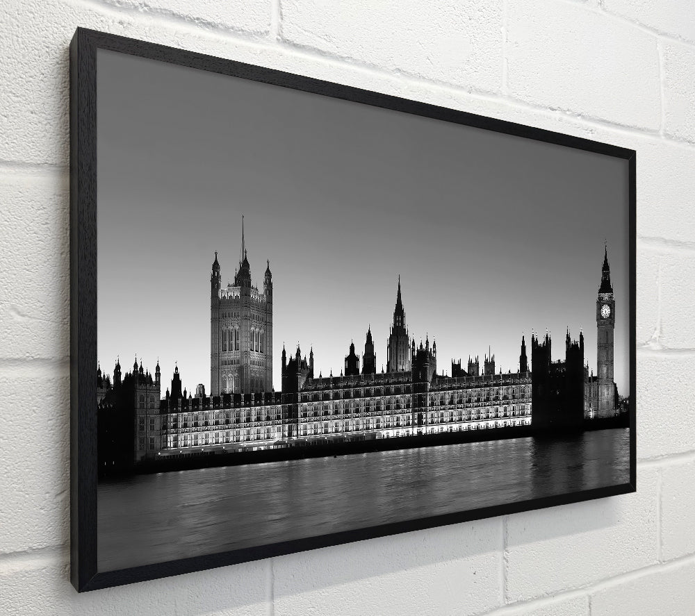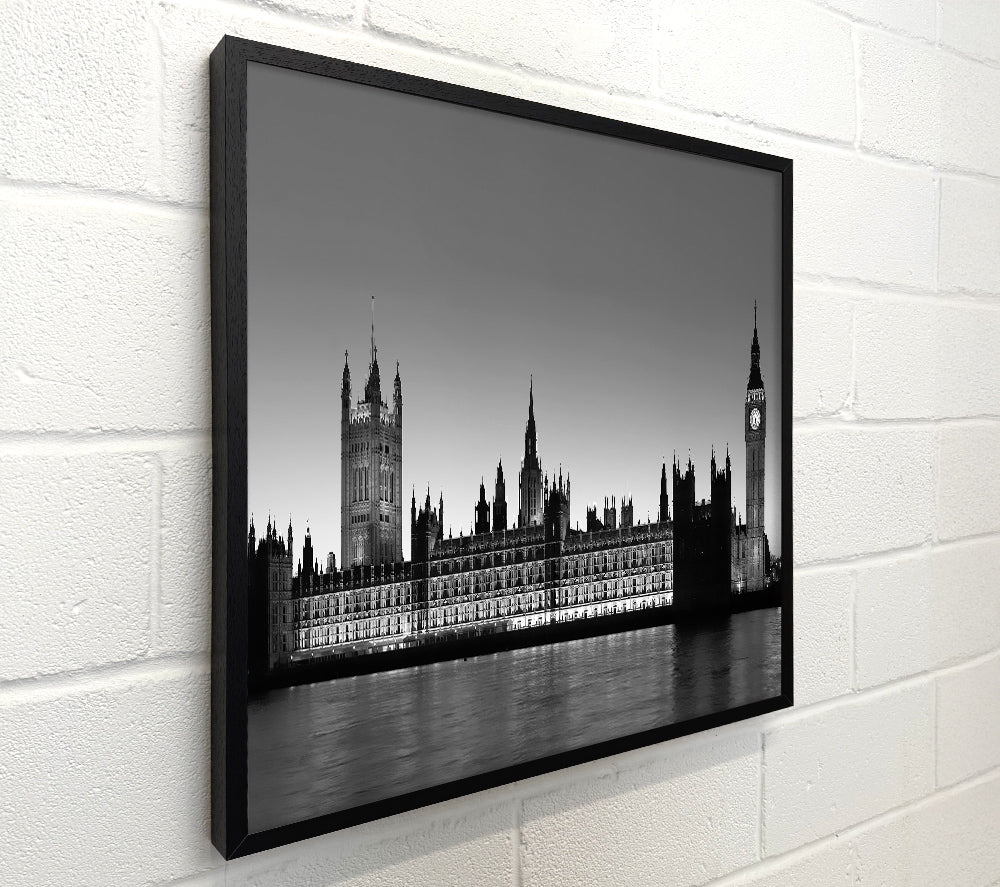 London Houses Of Parliament On The Thames B n W