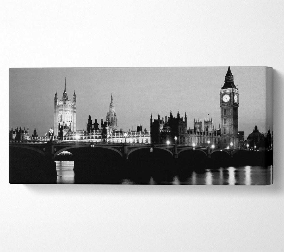Picture of London Houses Of Parliament With Big Ben B n W Panoramic Canvas Wall Art