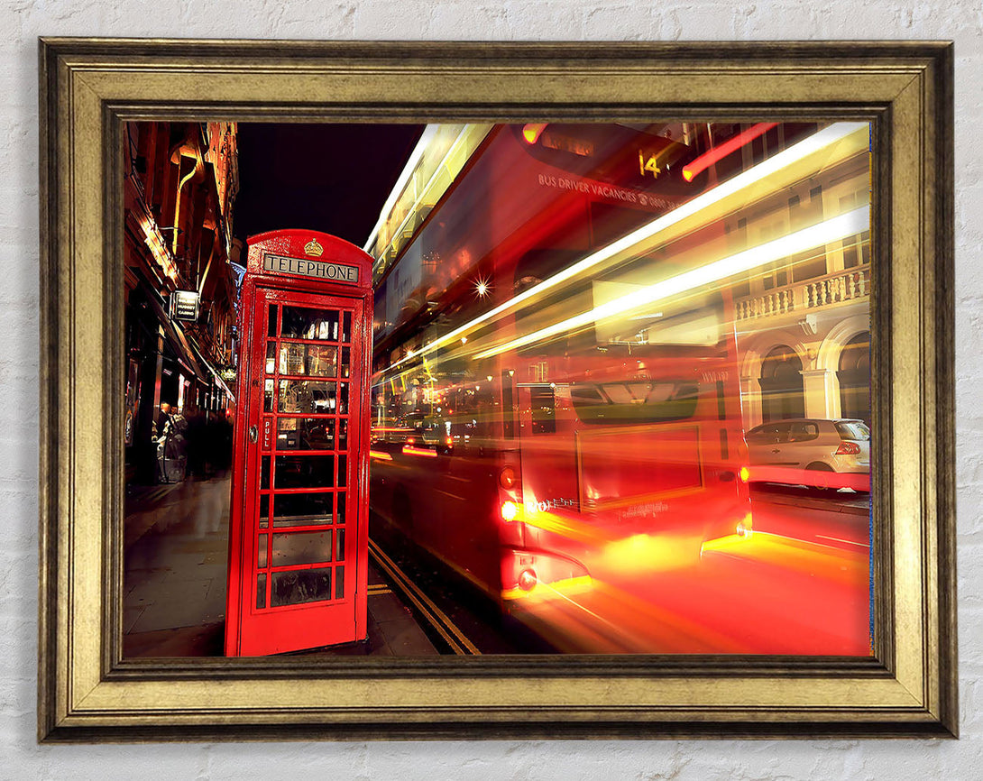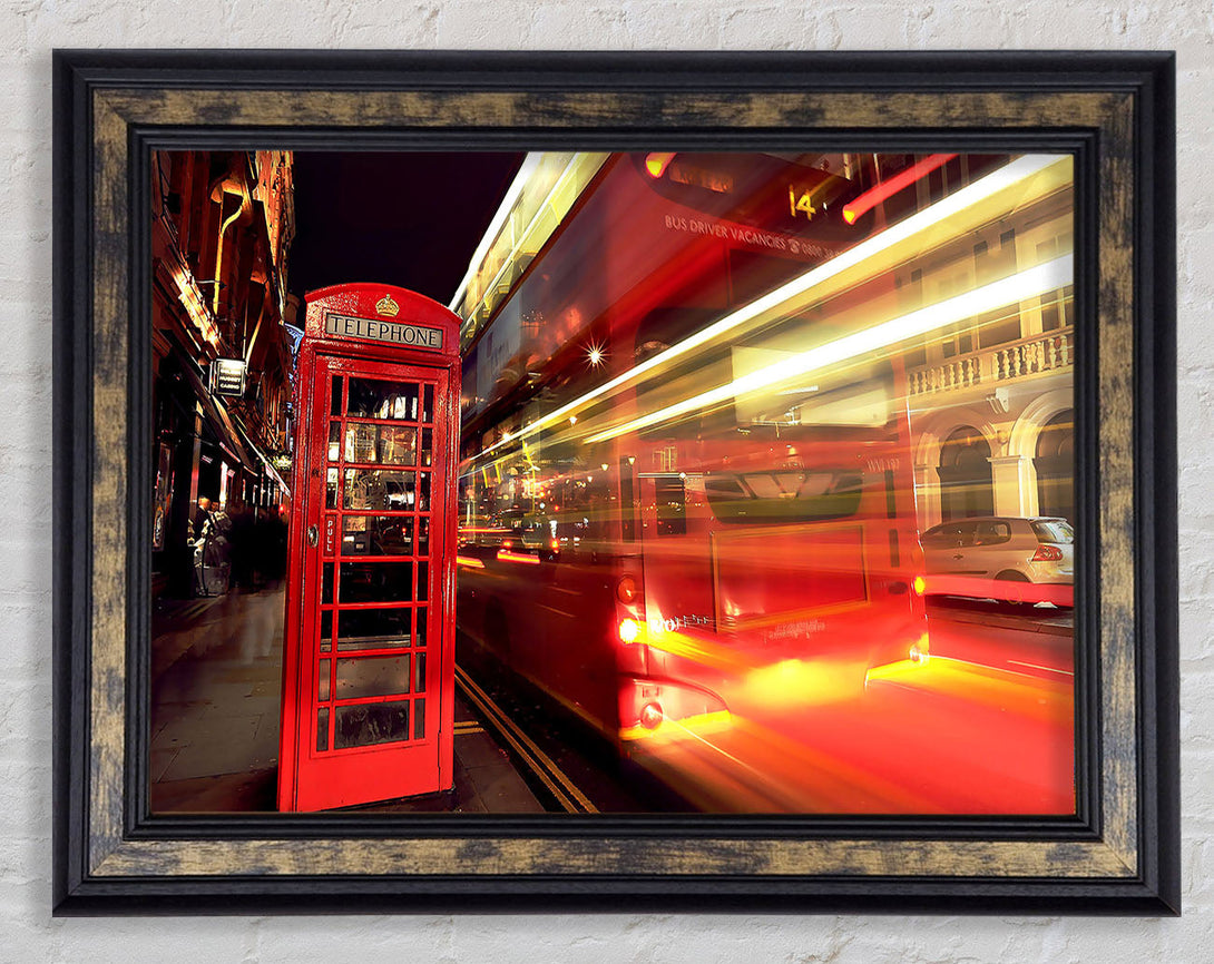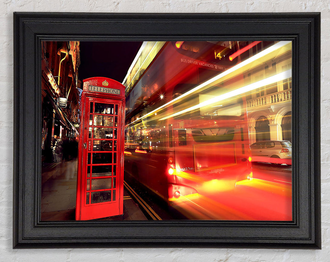 London Red Night Bus Blur Framed Print