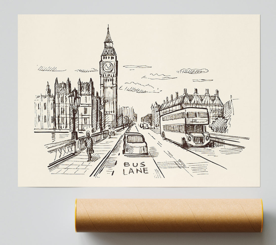 Our London Street Outline 1 Poster is printed 260 GSM premium lustre paper that offers vibrant colours and exceptional detail.