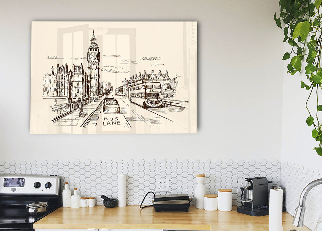 London Street Outline 1 acrylic print, UV printed onto 5mm thick acrylic glass. Comes with everything you need to hang on your wall.