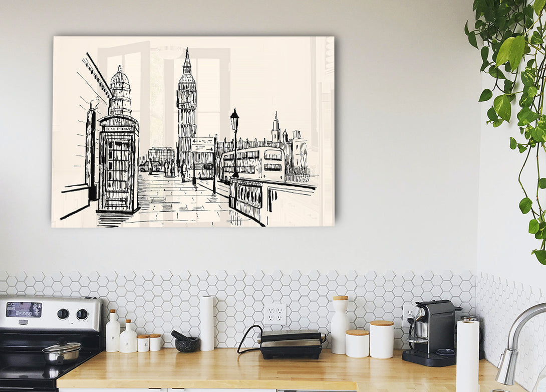London Street Outline 2 acrylic print, UV printed onto 5mm thick acrylic glass. Comes with everything you need to hang on your wall.