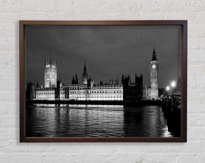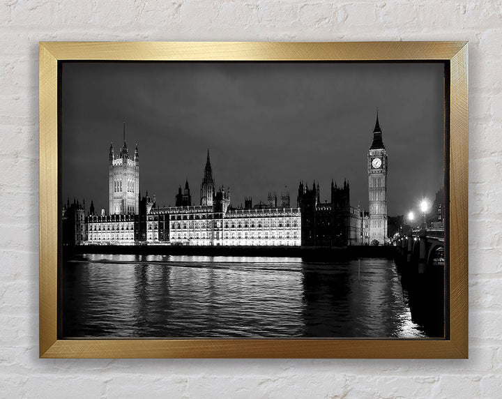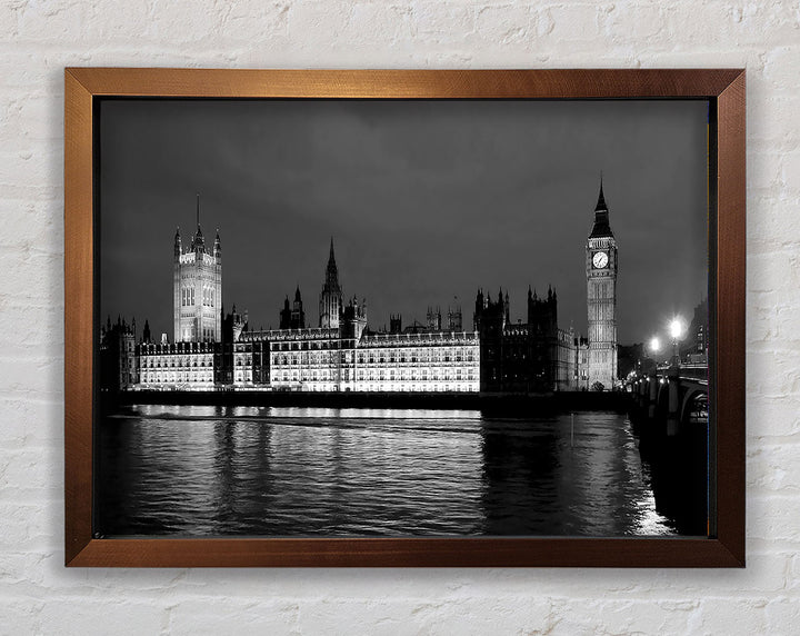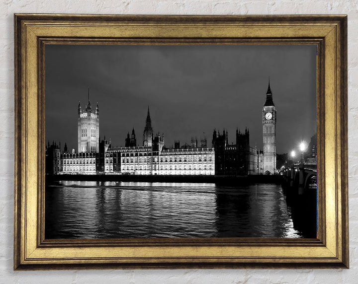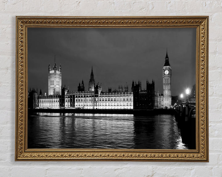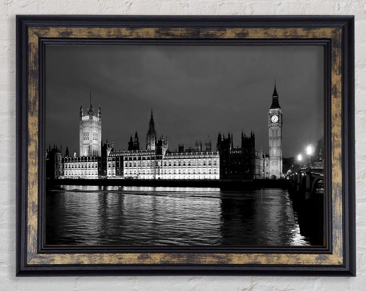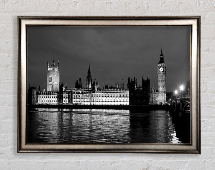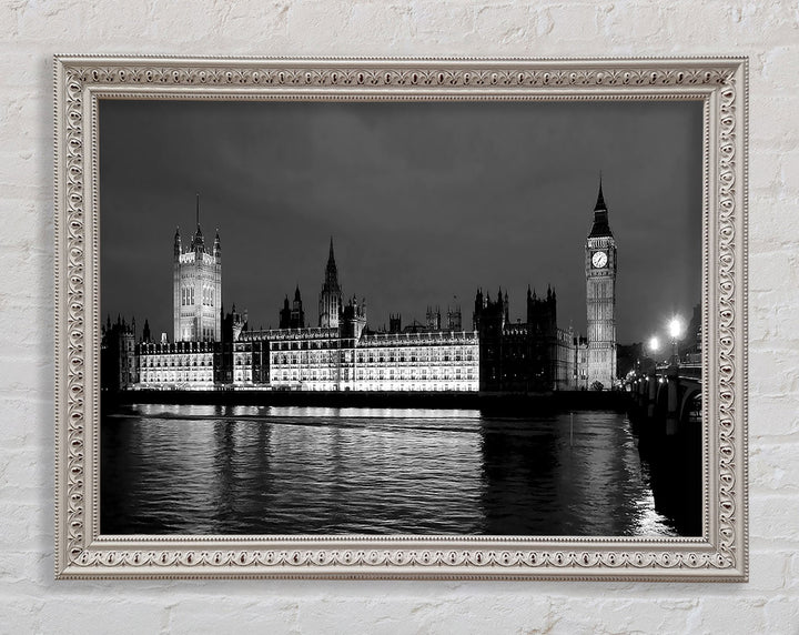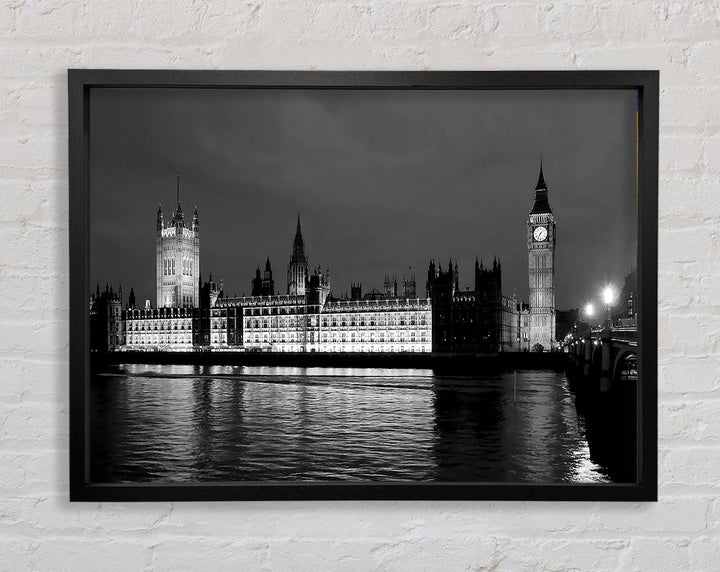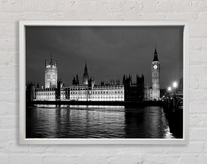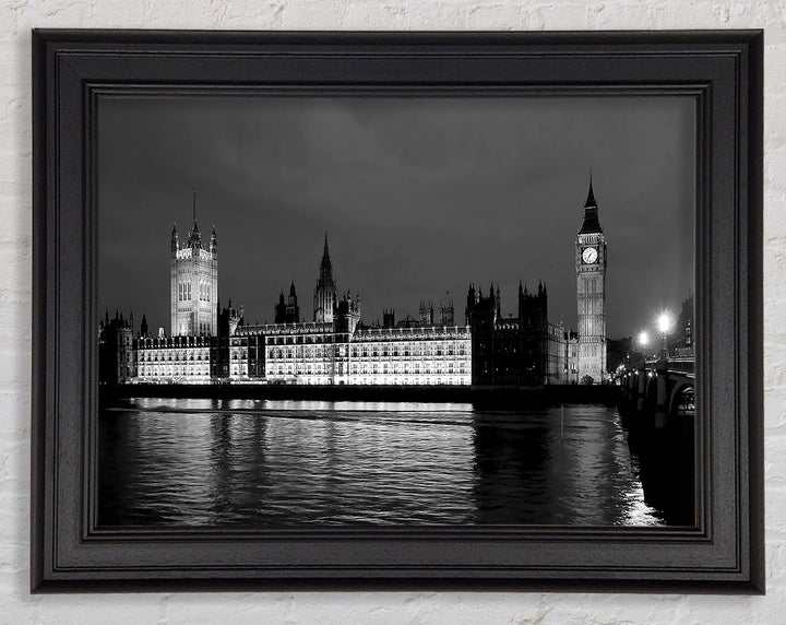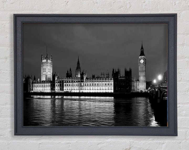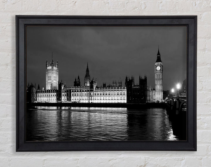 Transform your space with the London Thames Houses Of Parliament B n W Night Framed Print. This stunning piece of framed art captures the iconic beauty of London's Houses of Parliament at night, presented in striking black and white. Available in six sizes, from small to oversized, this versatile print fits any wall perfectly. Choose from a variety of frame colours to match your décor. Handmade in the United Kingdom, each print is crafted with care and attention to detail. Ready to hang, this framed art makes decorating easy and adds a touch of elegance to any room. Enjoy the timeless charm of London in your home today!