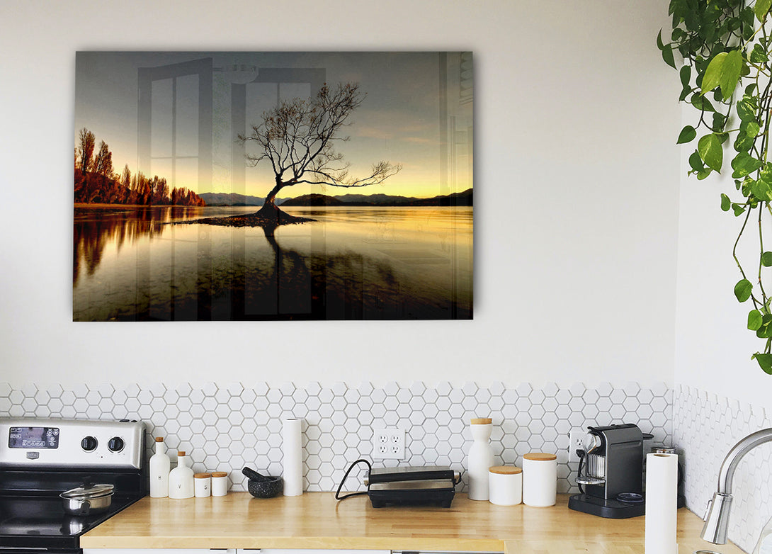 Lonely Lake Tree acrylic print, UV printed onto 5mm thick acrylic glass. Comes with everything you need to hang on your wall.