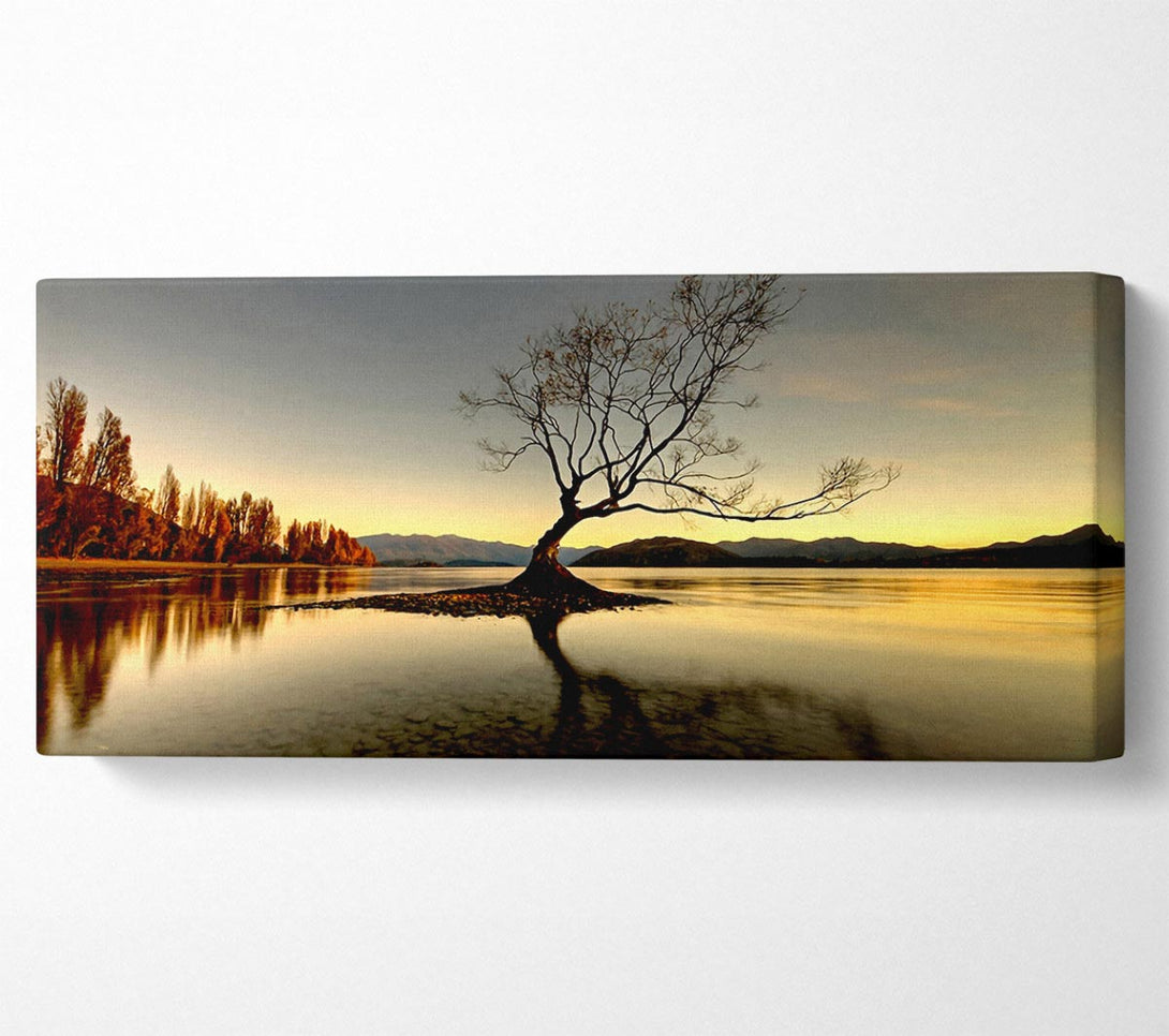 Lonely Lake Tree canvas, printed on coated polyester canvas. Mounted on to a 44mm box frame, ready to hang.