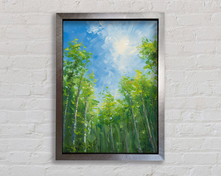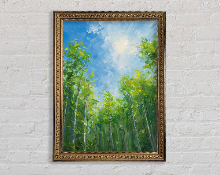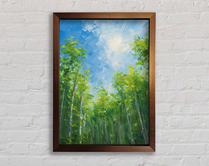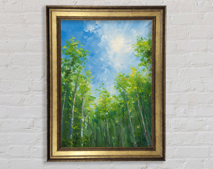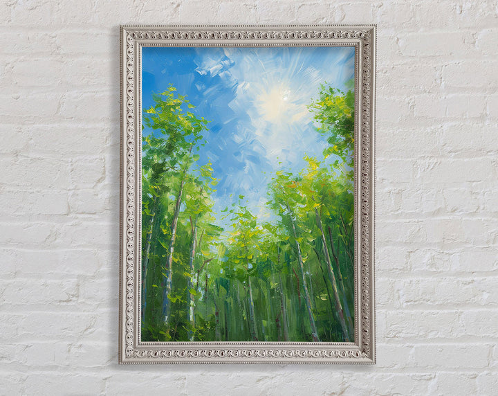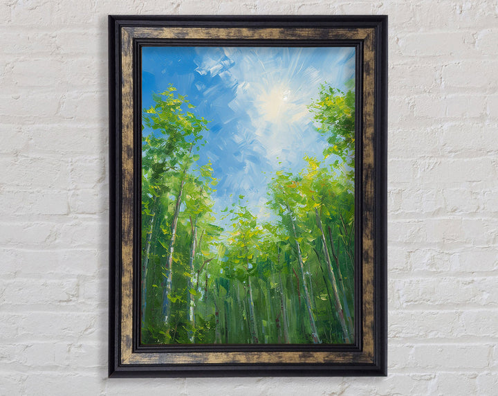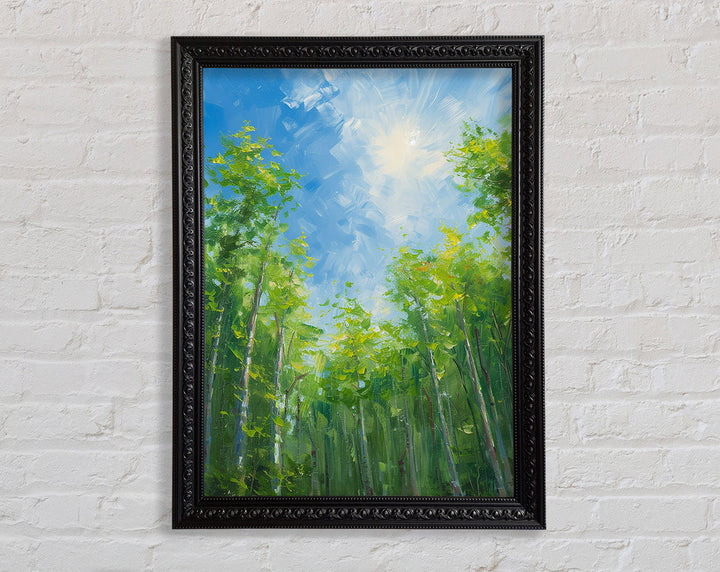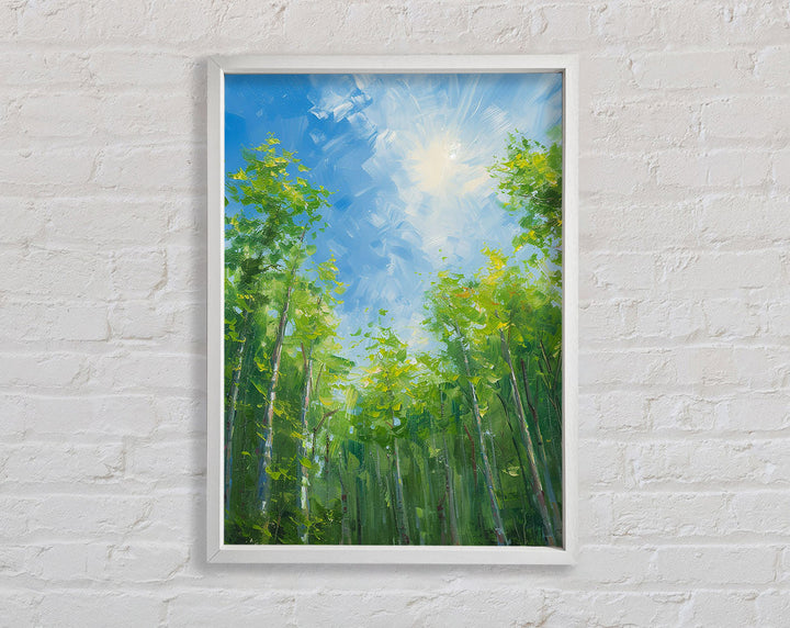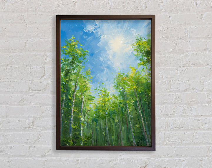 Introducing the Looking Up Through The Trees Framed Print, a stunning piece of framed art that brings nature's beauty into your home. This artwork captures the serene view of treetops against the sky, creating a sense of calm and wonder. Available in six sizes, from small to oversized, there's a perfect fit for any space. Choose from a variety of colors to match your decor style. Each piece is handmade in the United Kingdom, ensuring top-quality craftsmanship. Ready to hang, this framed print makes decorating easy and hassle-free. Elevate your living space with this beautiful, nature-inspired artwork.