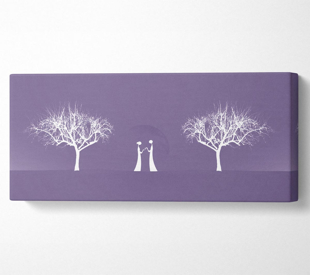 Love Between The Trees And Moon Lilac canvas, printed on coated polyester canvas. Mounted on to a 44mm box frame, ready to hang.