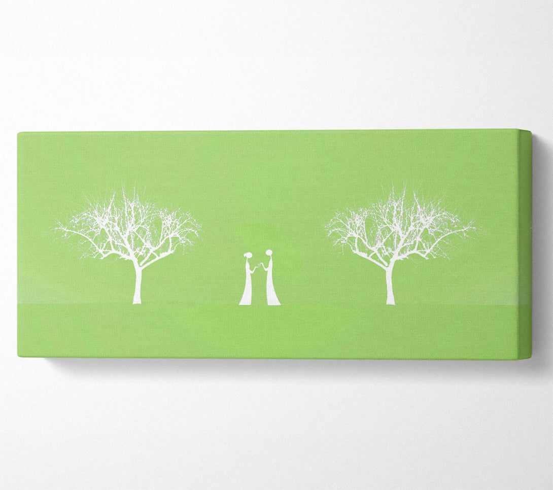 Picture of Love Between The Trees And Moon Lime Green Panoramic Canvas Wall Art