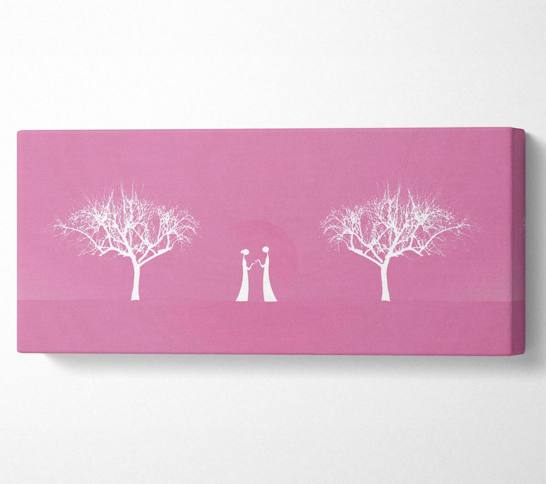 Love Between The Trees And Moon Pink canvas, printed on coated polyester canvas. Mounted on to a 44mm box frame, ready to hang.