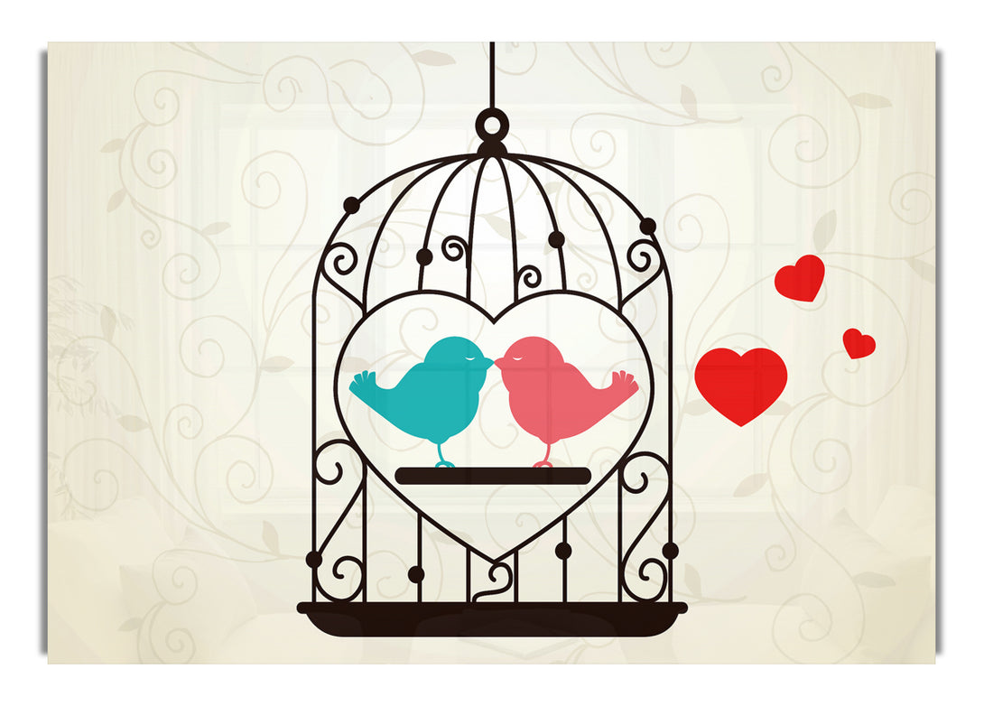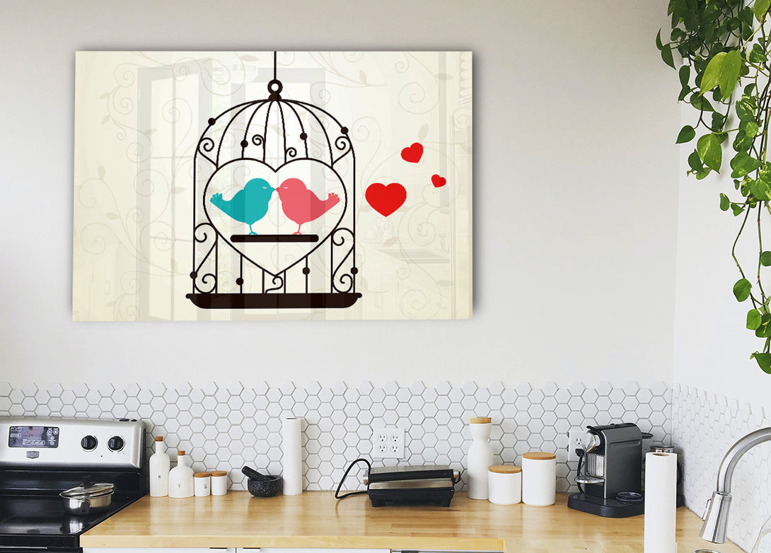 Love Birds acrylic print, UV printed onto 5mm thick acrylic glass. Comes with everything you need to hang on your wall.