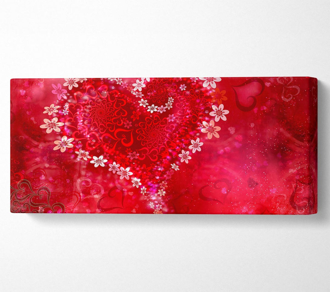 Love Heart Flowers canvas, printed on coated polyester canvas. Mounted on to a 44mm box frame, ready to hang.