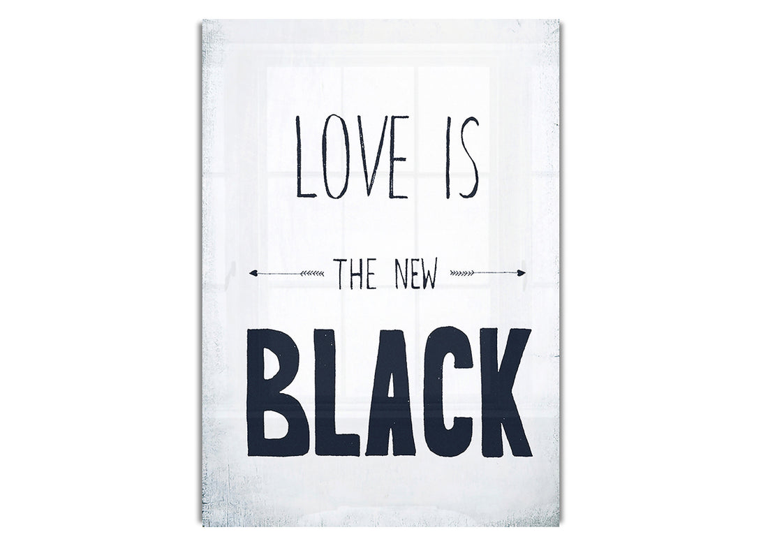 Love Is The New Black acrylic print, UV printed onto 5mm thick acrylic glass. Comes with everything you need to hang on your wall.