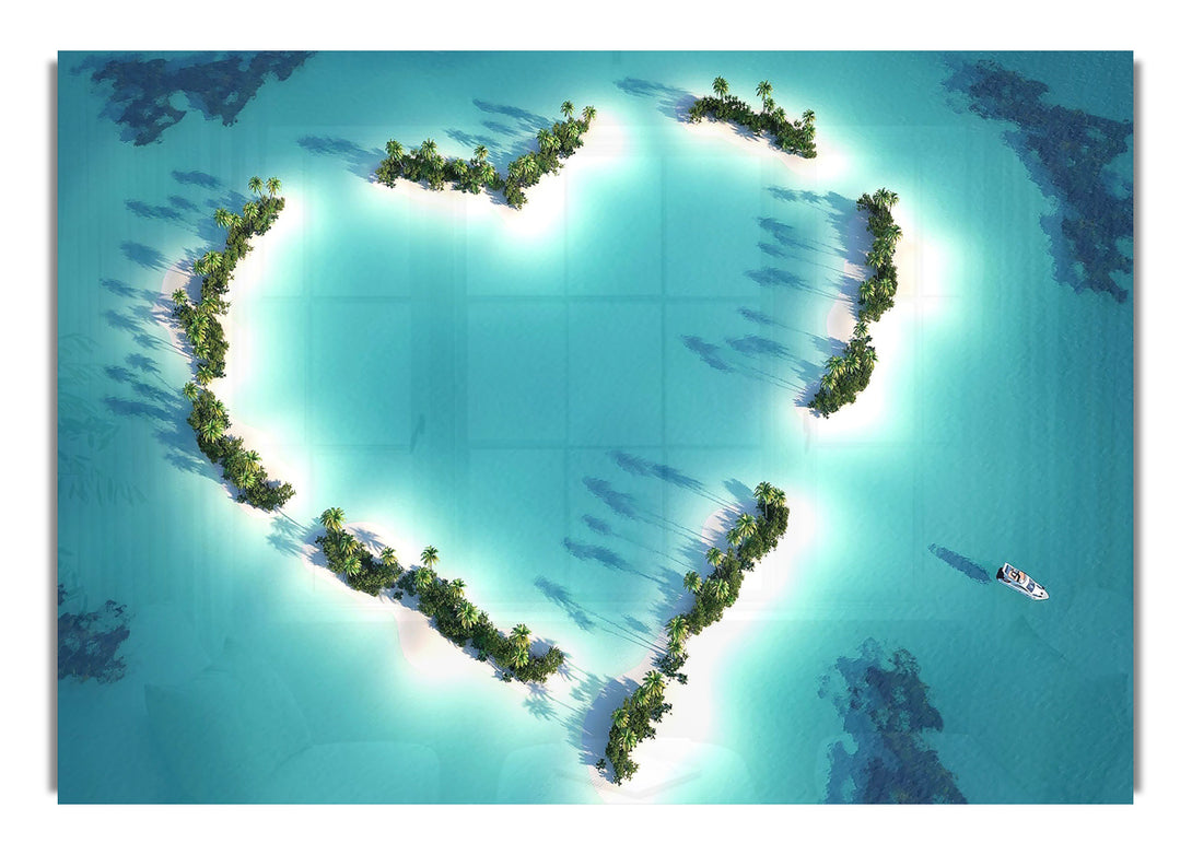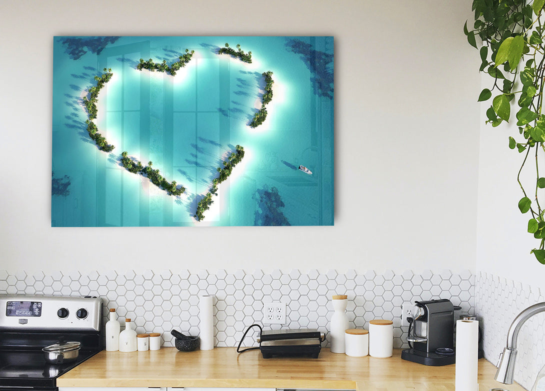 Love Island acrylic print, UV printed onto 5mm thick acrylic glass. Comes with everything you need to hang on your wall.