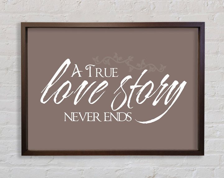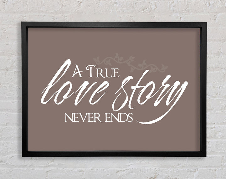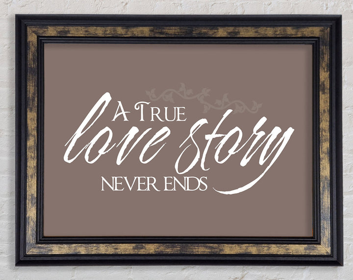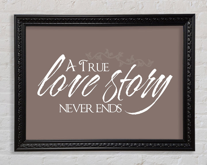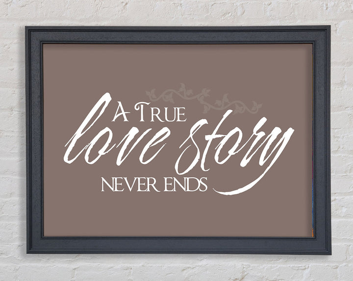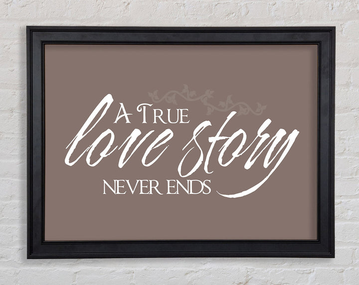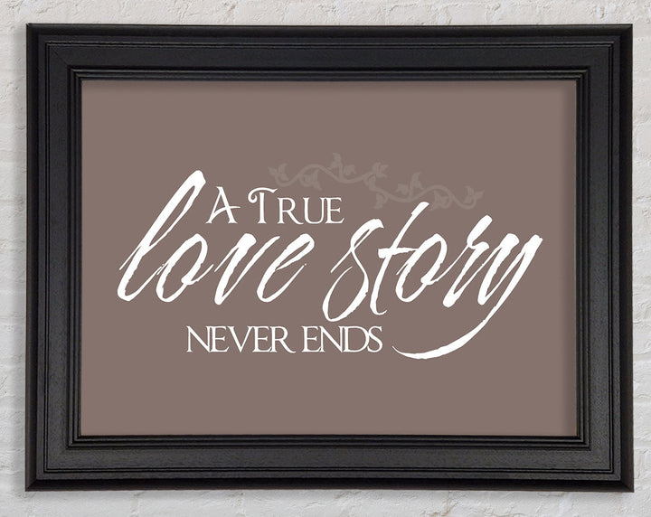 Love Quote A True Love Story Never Ends Beige Framed Print