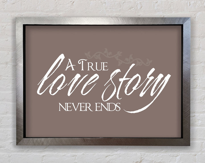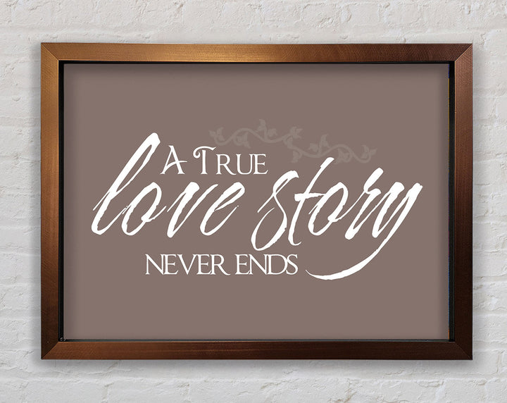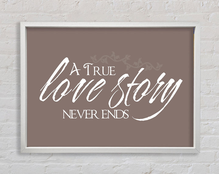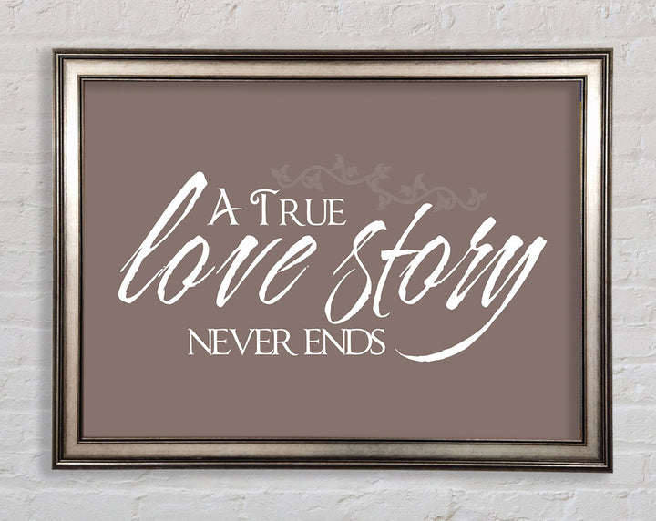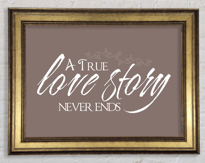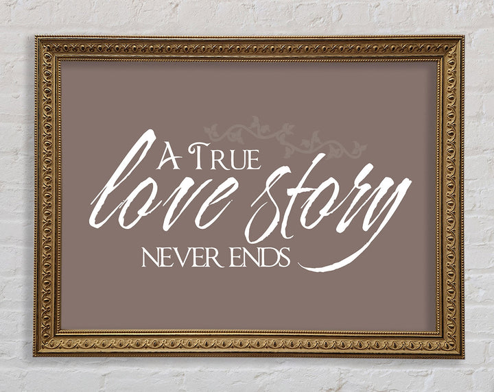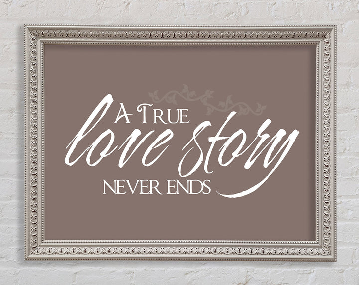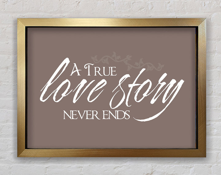 Love Quote A True Love Story Never Ends Beige Framed Print