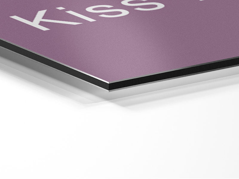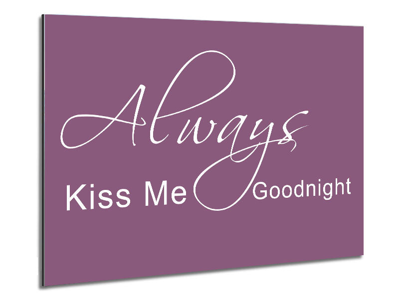 Love Quote Always Kiss Me Goodnight 2 Dusty Pink Printed on brushed aluminium dibond. A modern way to display art and easy to maintain.