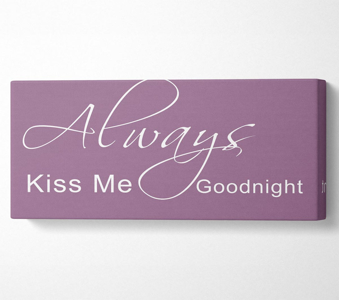 Love Quote Always Kiss Me Goodnight 2 Dusty Pink canvas, printed on coated polyester canvas. Mounted on to a 44mm box frame, ready to hang.