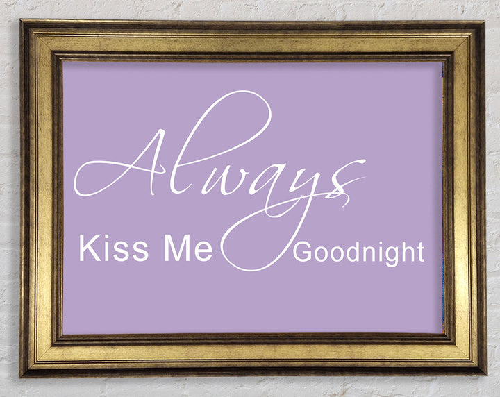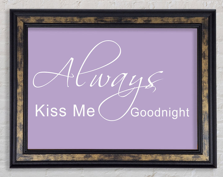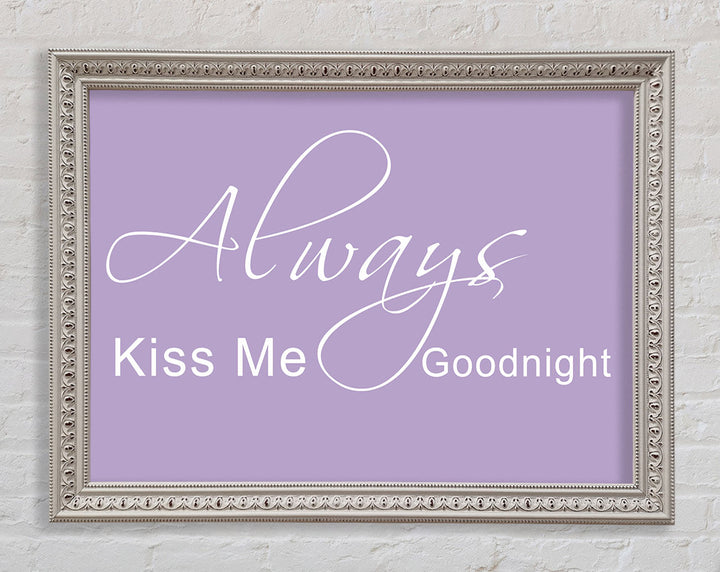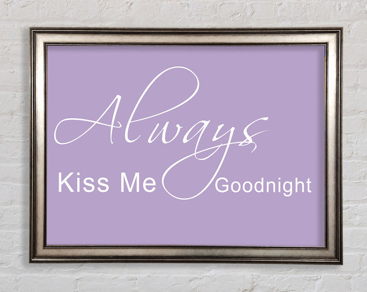Love Quote Always Kiss Me Goodnight 2 Lilac Framed Print