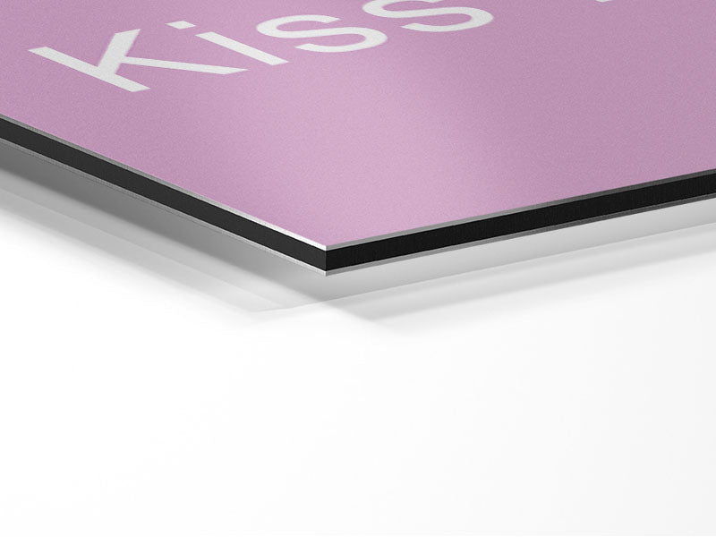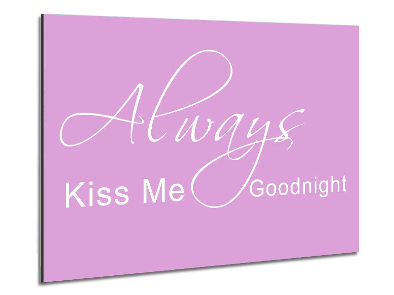 Love Quote Always Kiss Me Goodnight 2 Pink Printed on brushed aluminium dibond. A modern way to display art and easy to maintain.