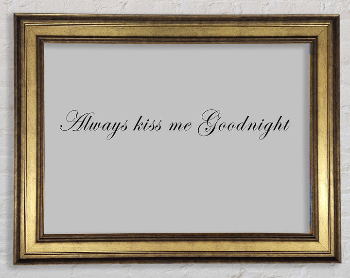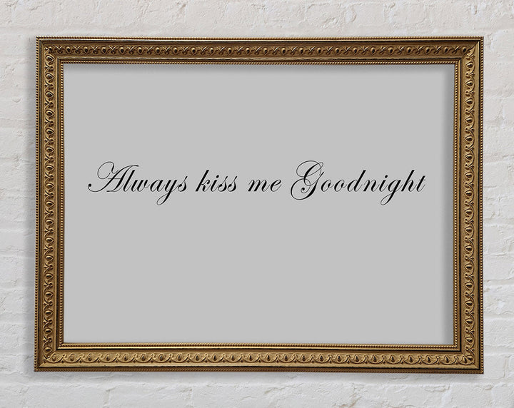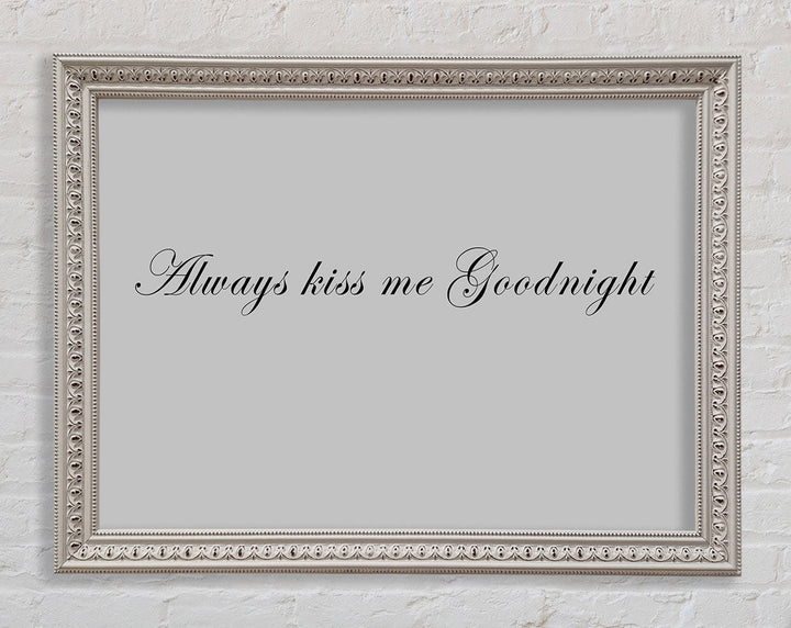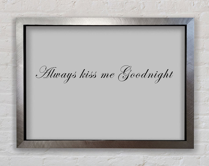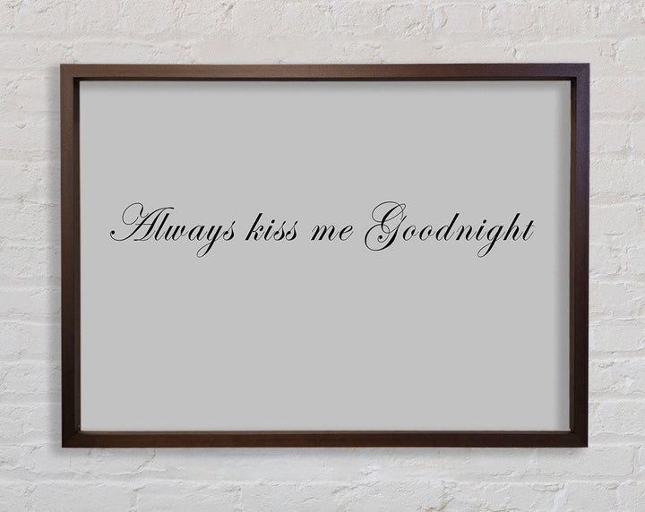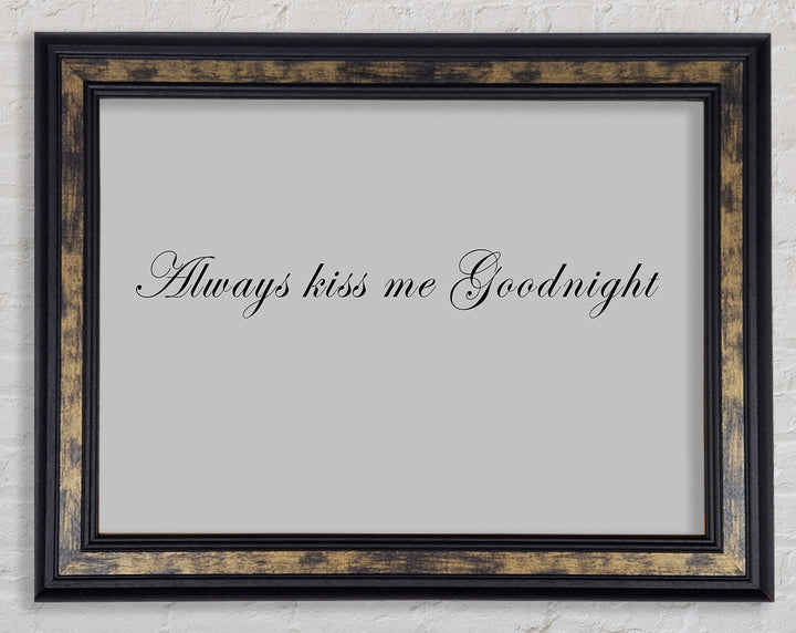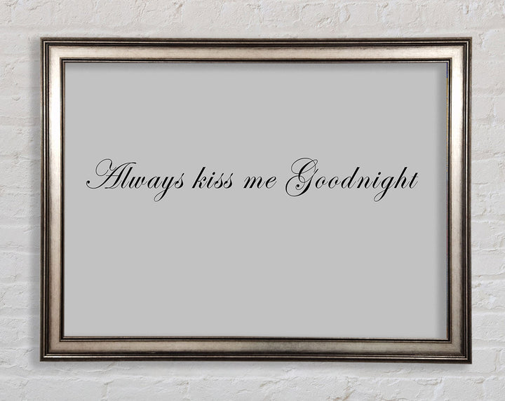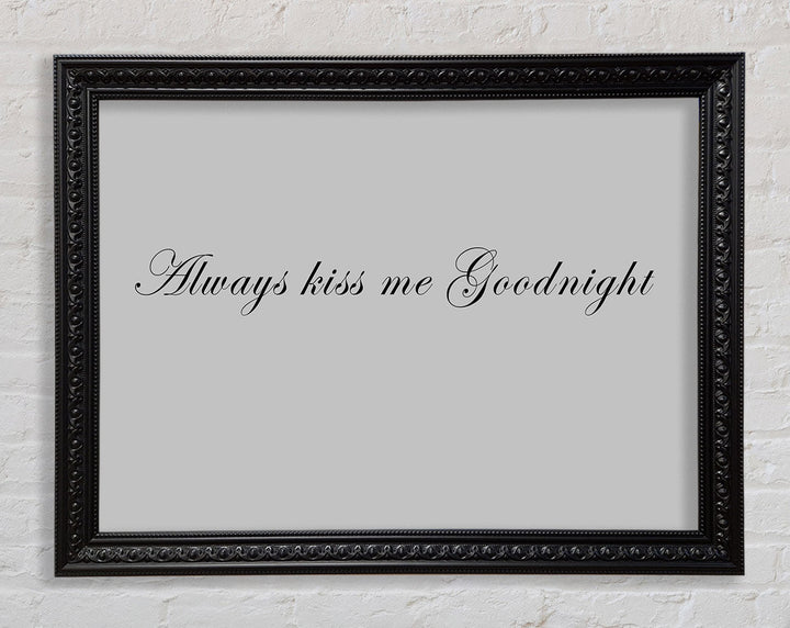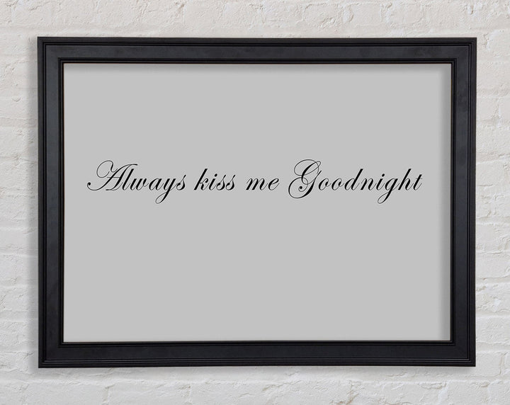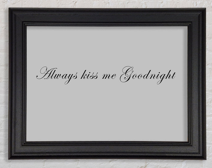 Love Quote Always Kiss Me Goodnight Grey Framed Print