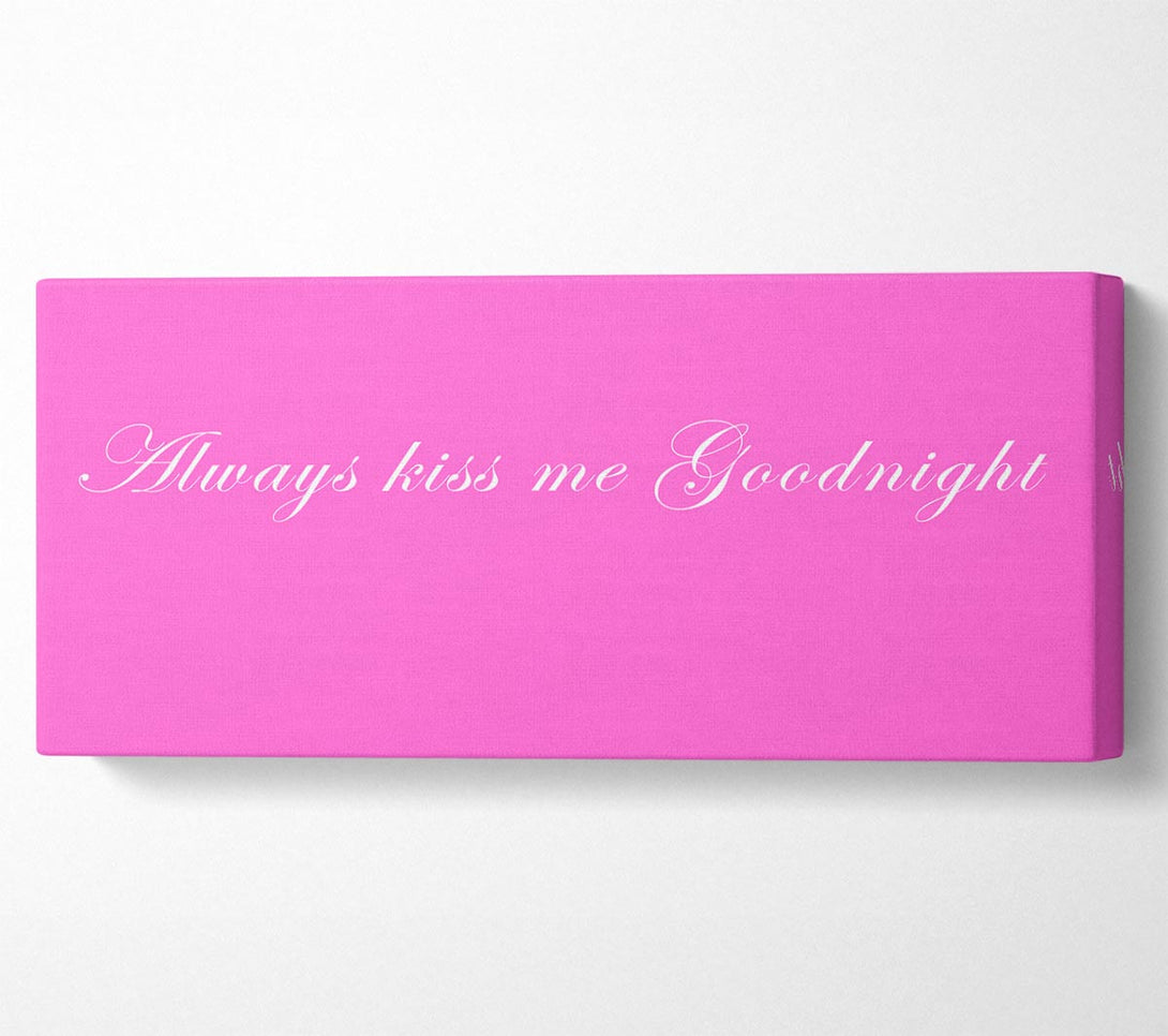 Love Quote Always Kiss Me Goodnight Vivid Pink canvas, printed on coated polyester canvas. Mounted on to a 44mm box frame, ready to hang.