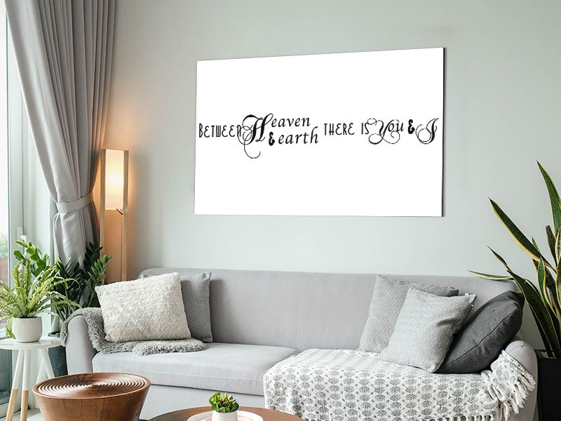 Love Quote Between Heaven And Earth Printed on brushed aluminium dibond. A modern way to display art and easy to maintain.