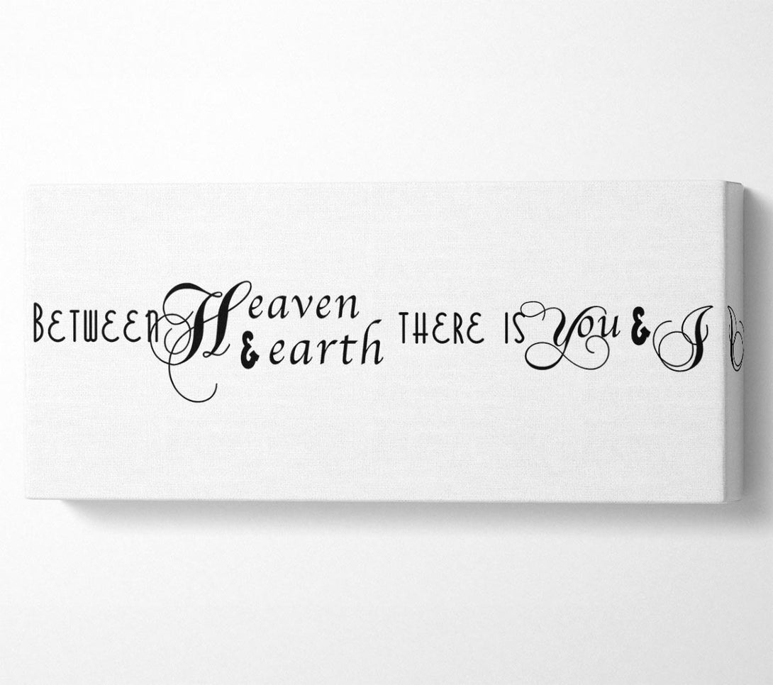 Love Quote Between Heaven And Earth canvas, printed on coated polyester canvas. Mounted on to a 44mm box frame, ready to hang.
