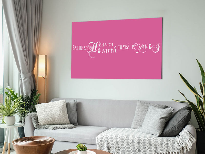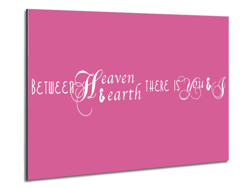 Love Quote Between Heaven And Earth Pink Printed on brushed aluminium dibond. A modern way to display art and easy to maintain.