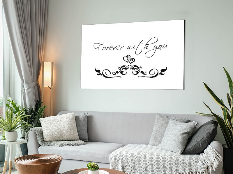 Love Quote Forever With You White Printed on brushed aluminium dibond. A modern way to display art and easy to maintain.