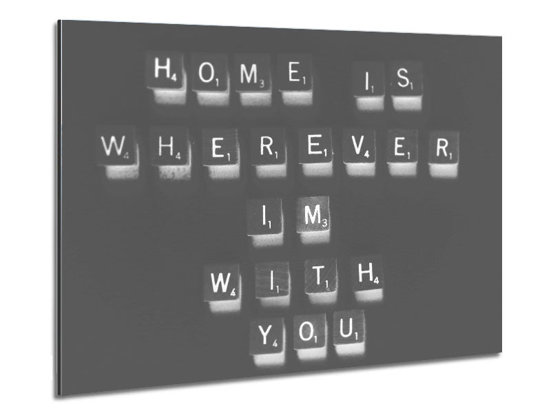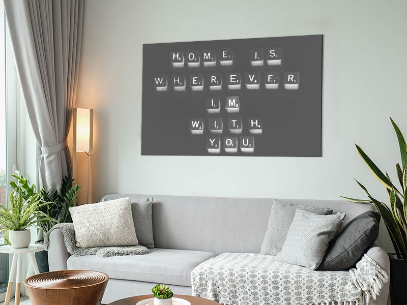 Love Quote Home Is Wherever Im With You Grey Printed on brushed aluminium dibond. A modern way to display art and easy to maintain.